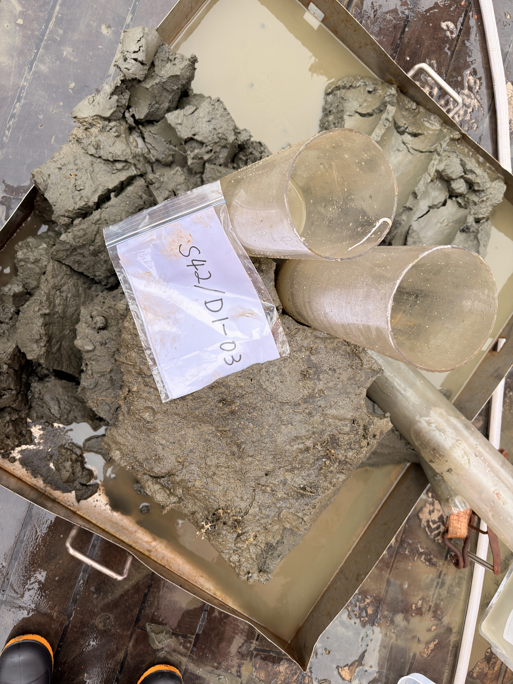 唐正打了一个比方:沉积物就像海底的一块大蛋糕,箱式取样器和柱状取样器则是重达一吨的“取样餐具”,借助重力作用砸向海底。箱式取样器取的是“奶油”,也就是表层沉积物;柱状取样器则会扎入蛋糕更深处,取出细长的圆柱状样品,即柱状沉积物。这些样品,主要用来研究沉积环境、海洋污染物及底栖生物。