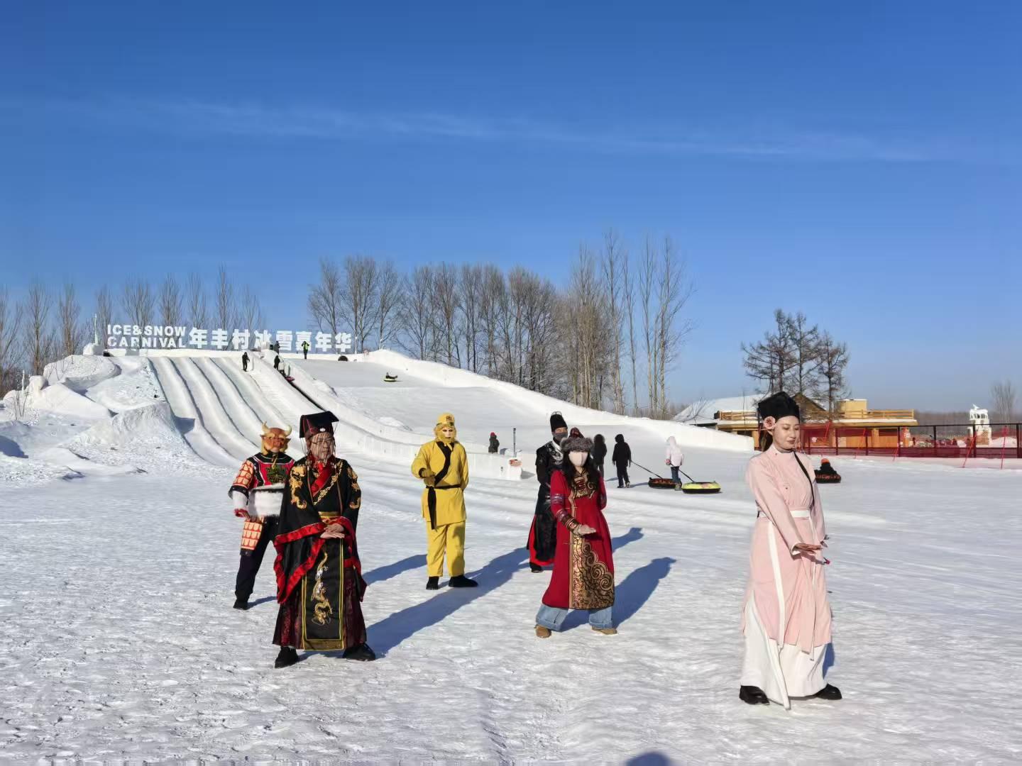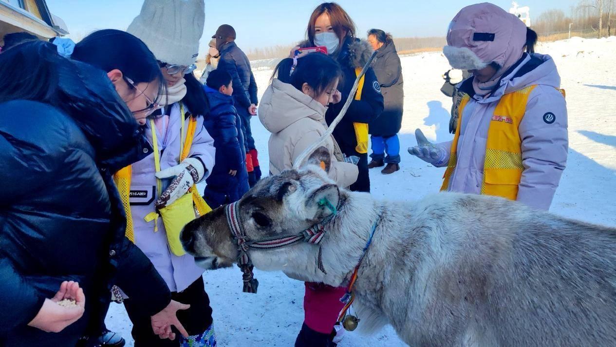 在年丰乡年丰村,北欧浪漫与东北乡村肌理深度融合,游客既能体验正宗芬兰浴、驰骋雪地摩托、与驯鹿亲密互动,还能打卡“哈尔的移动城堡”等网红地标;针对亲子家庭,这里还打造了20余种室内外研学活动,让孩子们尽享冬日童趣。