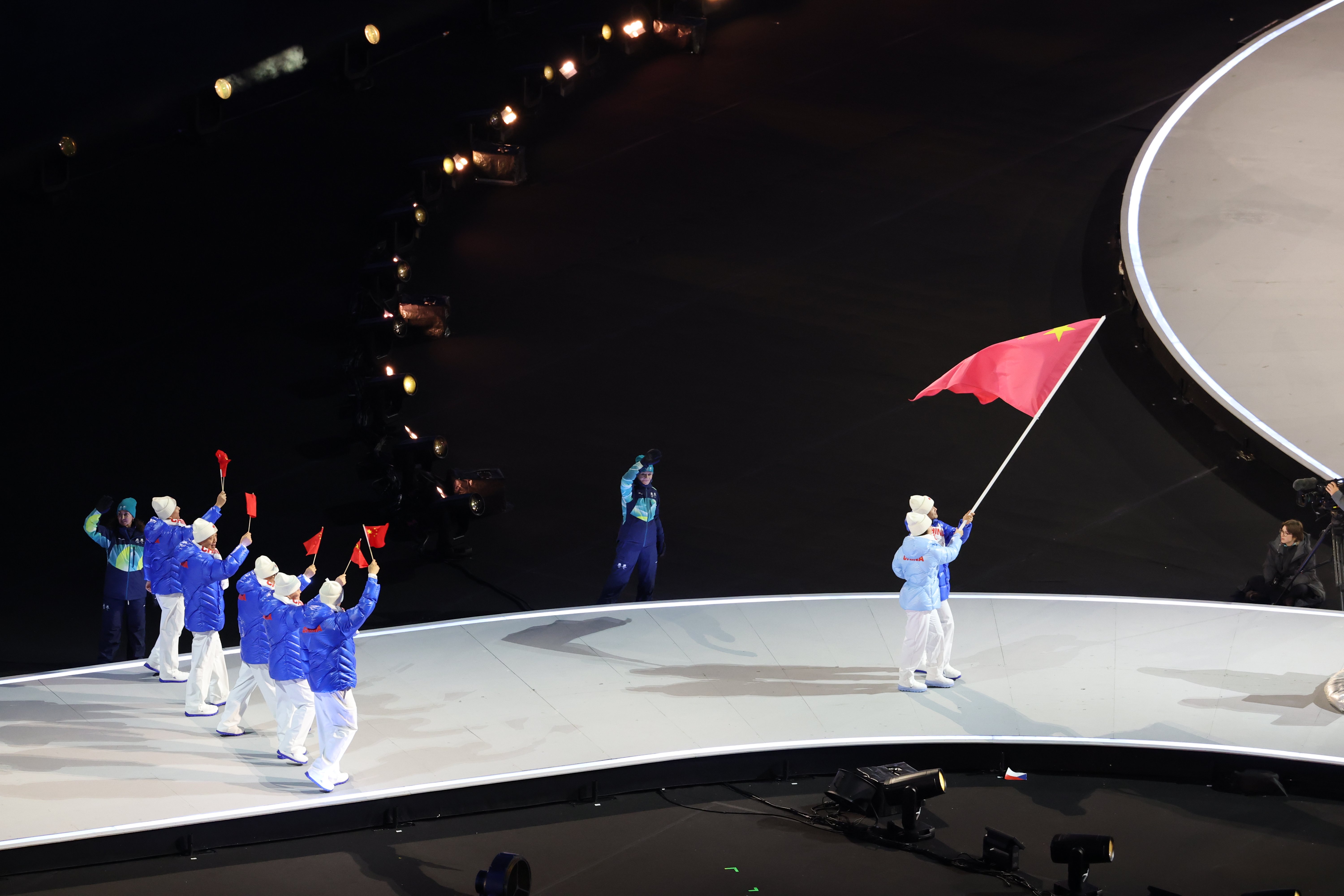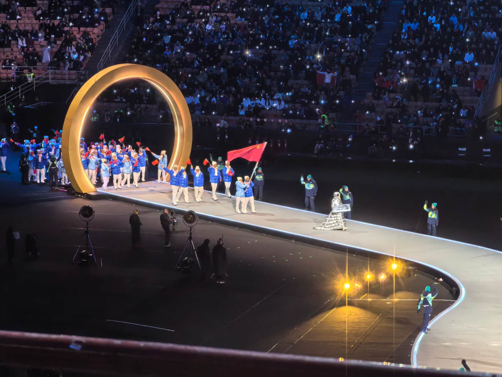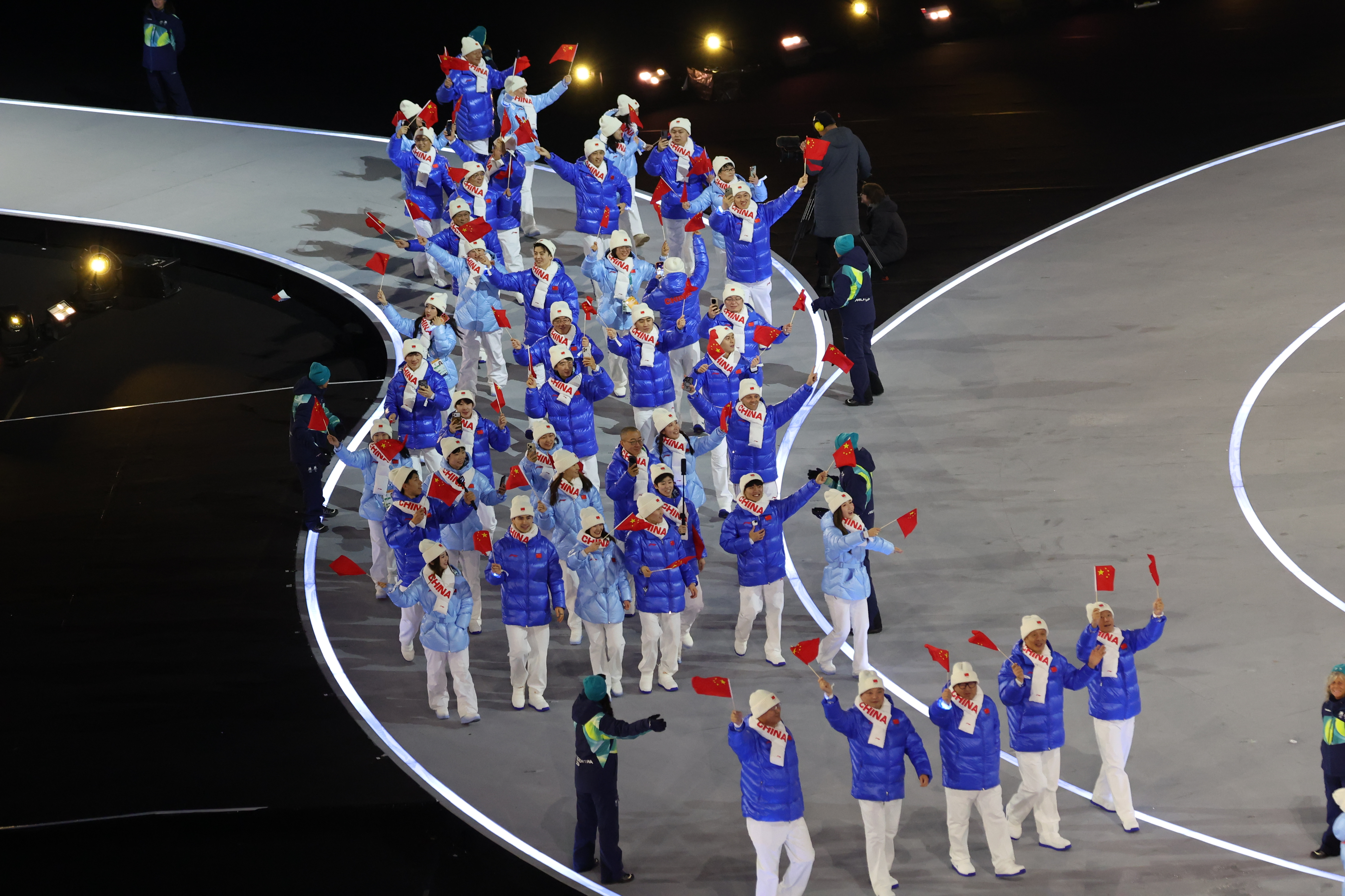 2026年米兰-科尔蒂纳冬奥会开幕式上,中国体育代表团入场,五星红旗闪耀冬奥!