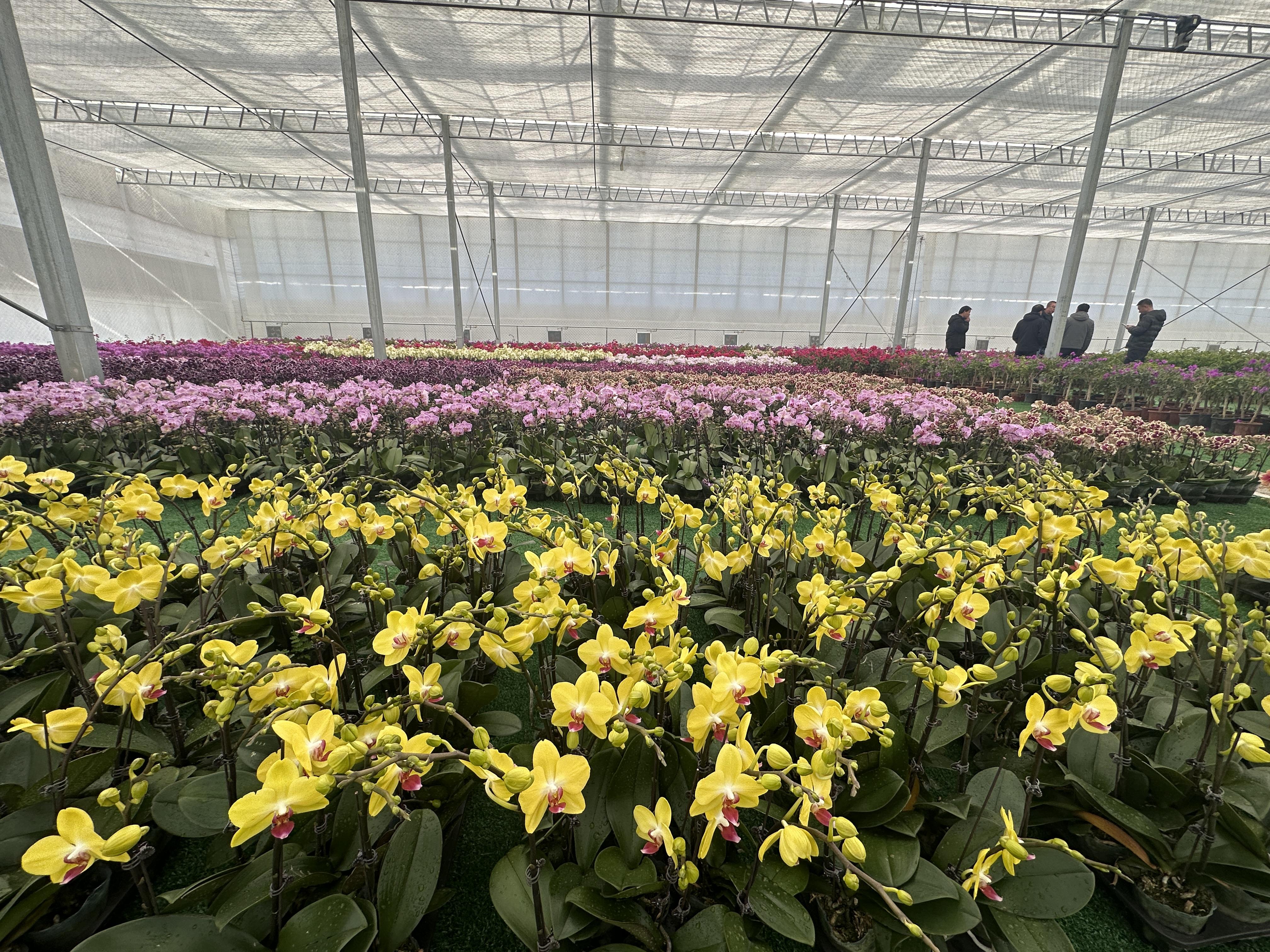 作为近期重点落地项目,唐山芦台晨丰现代花卉示范基地填补了当地林果花卉产业空白。温室内,5万株小花蝴蝶兰、木本石灰灯绣球、盆栽桂花等整齐排列,生机勃勃。