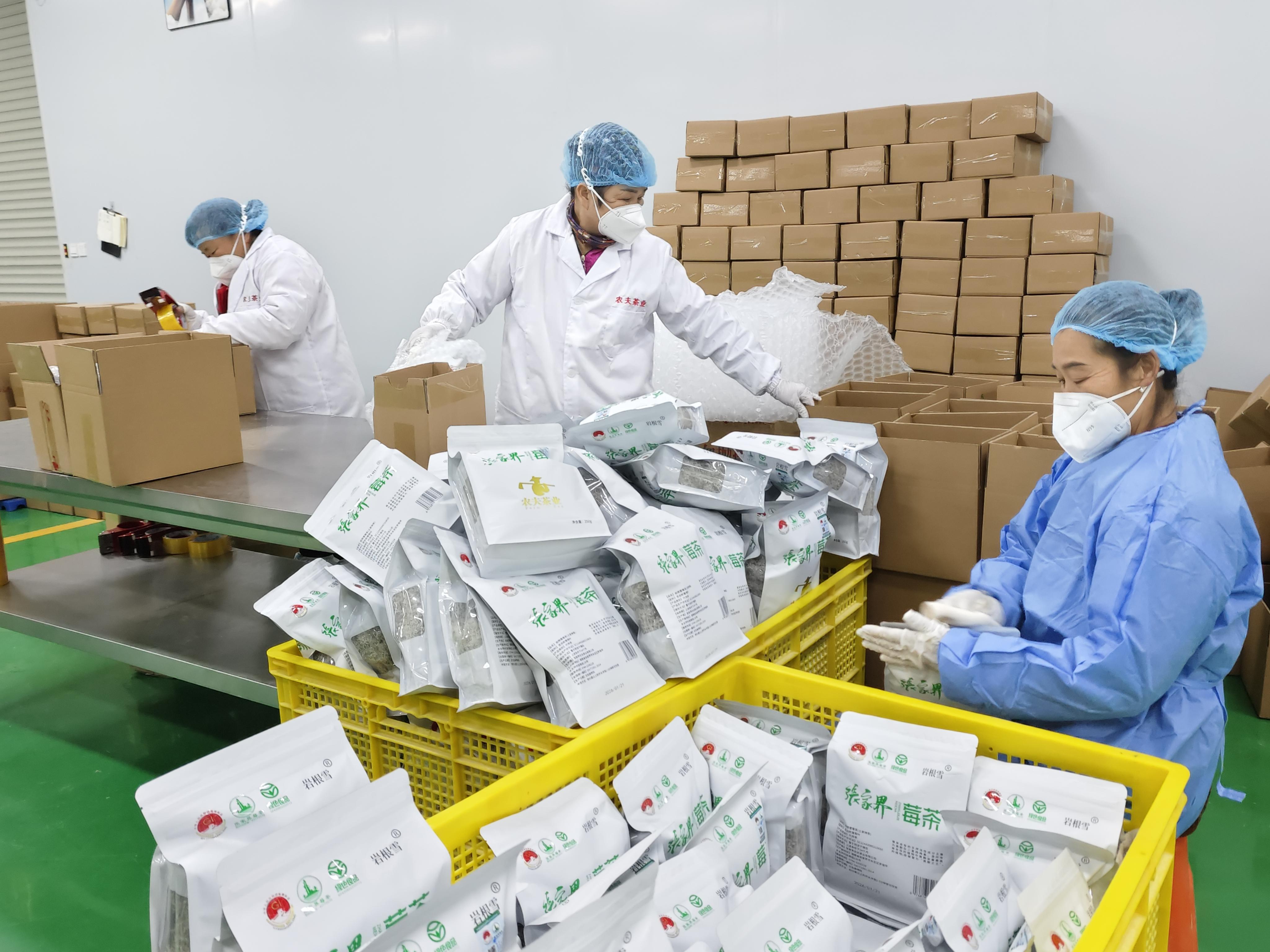 她麻利地将白色莓茶装入罐中,脸上带着笑:“来这里工作,每年能增收上万元,中午晚上还能回家照顾家人。以前就靠老公一个人打工,现在两人都挣钱,日子宽裕多了!”