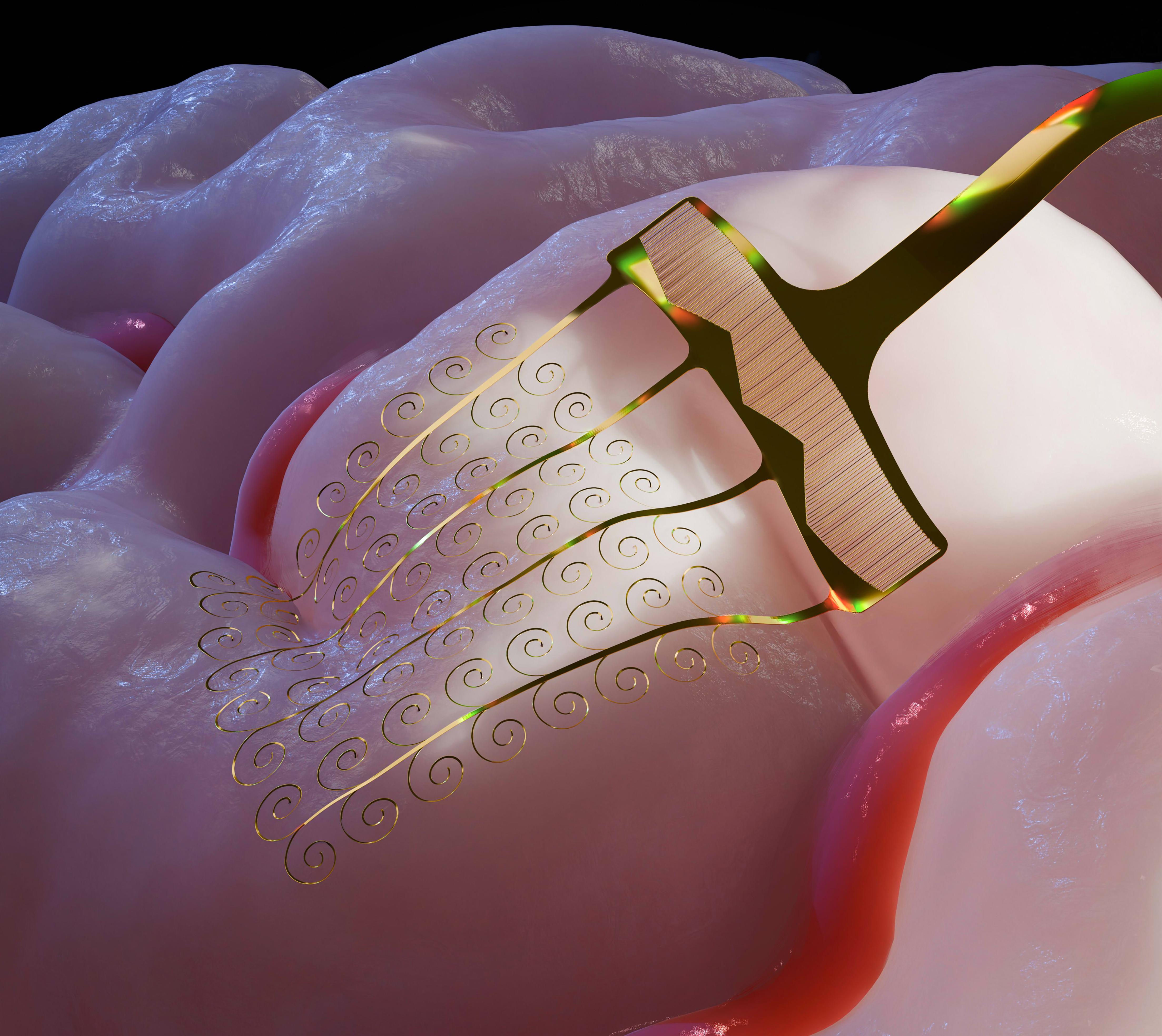 侵入式脑机接口技术被业界认为是高带宽人机交互的终极方向。马斯克创办的Neuralink公司于2024年年初完成首例人体植入后不久,高达85%的柔性电极丝从该患者的脑组织中脱出。电极脱出不仅会直接降低脑电信号采集的数量与精度,还可能引起脑组织炎症反应。而这也是侵入式脑机接口的共性难题——面对大脑的动态运动,传统的线性电极无法实时地顺应脑组织的变化,容易发生电极移位,甚至从脑组织中脱出。