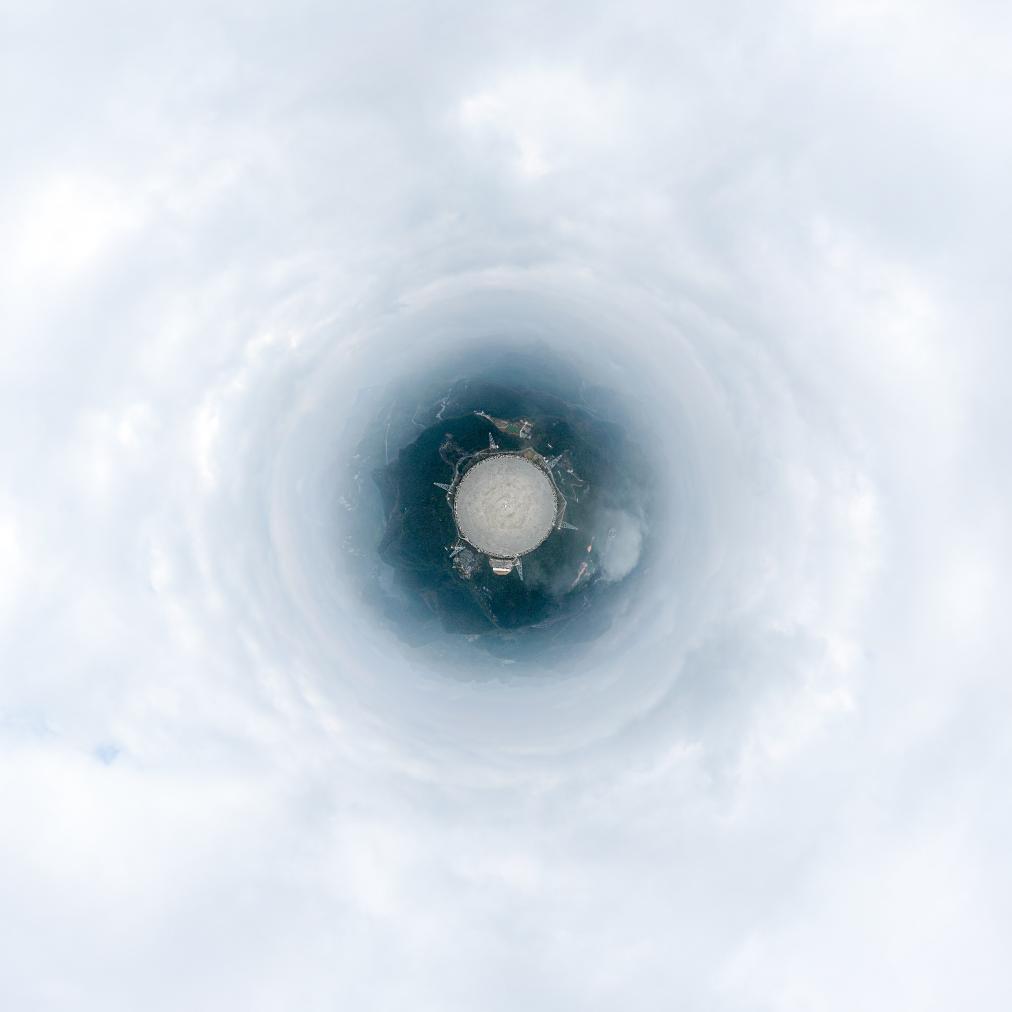 贵州平塘,群山环抱中,“中国天眼”FAST500米口径的射电望远镜如同一只观天巨眼。