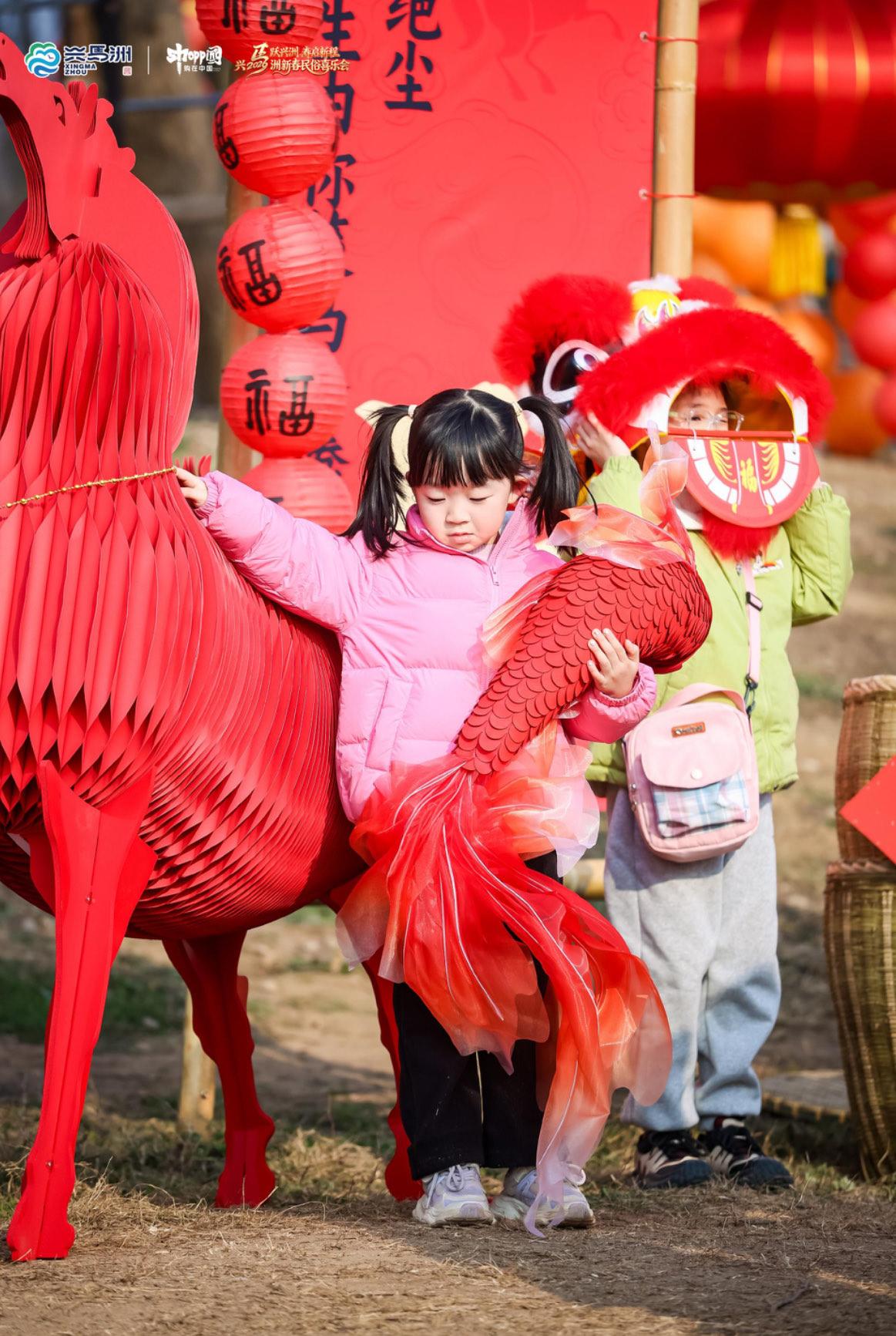 新春民俗喜乐会打破了单一场地的局限,创新性地采用了“一江两岸,双核联动”模式举办大会。市民游客通过乘坐接驳车、“天马渡江”轮渡,可轻松往返于兴马洲与东窑港两地,“一站式”体验两种不同韵味的年味。