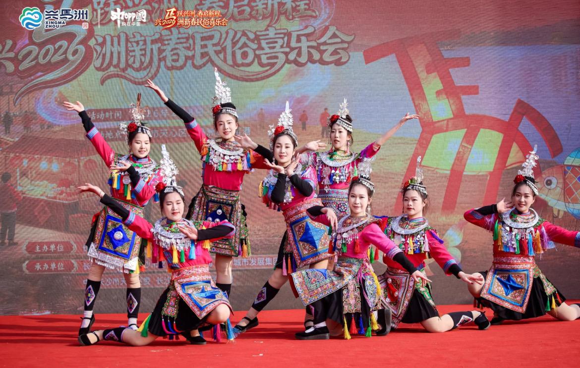 雄狮随鼓点腾跃翻滚,花瑶阿哥阿妹歌声随风飘来。2月8日—9日,“马跃兴洲 春启新程”2026兴马洲新春民俗喜乐会在长沙市天心区兴马洲、东窑港同步举行。大会期间,长沙市商务局发布2026年系列促消费活动,着力以文旅融合为纽带,全面激活消费新动能、点燃消费新热点。
