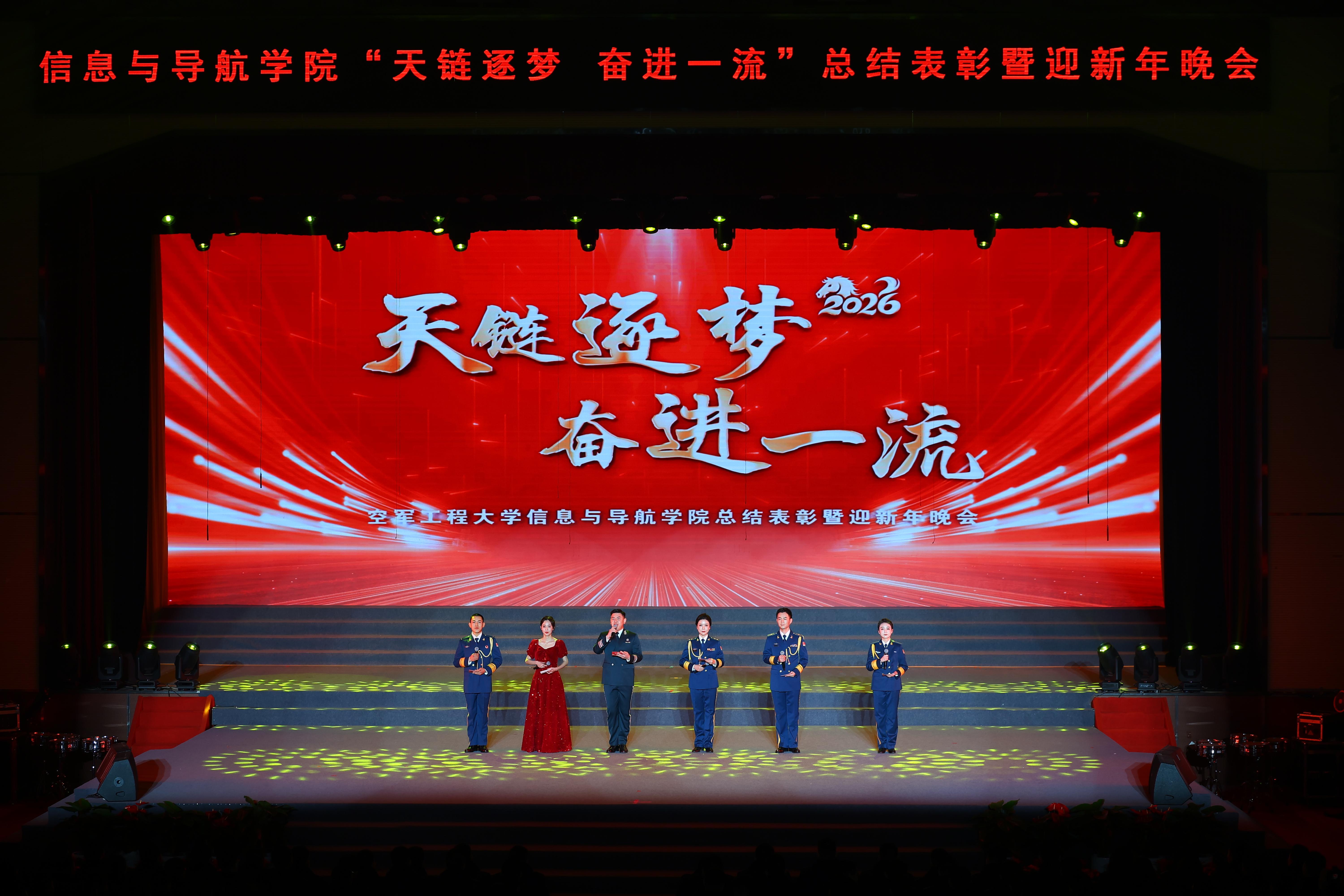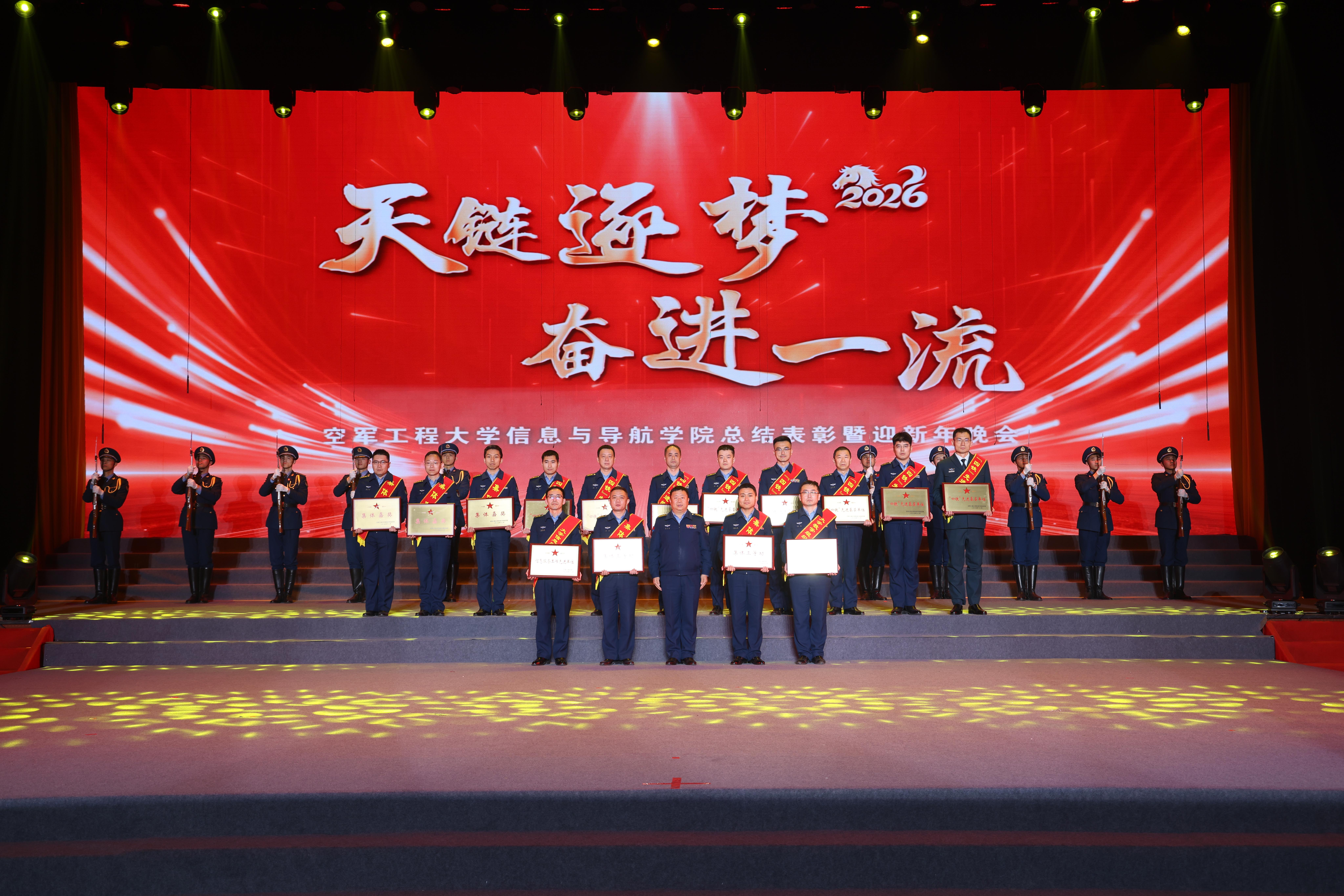 1月30日,空军工程大学信息与导航学院举行“天链逐梦 奋进一流”总结表彰暨迎新年晚会。全院官兵与教员欢聚一堂,在精彩的文艺表演中回顾过去一年的奋斗历程,表彰年度先进典型。