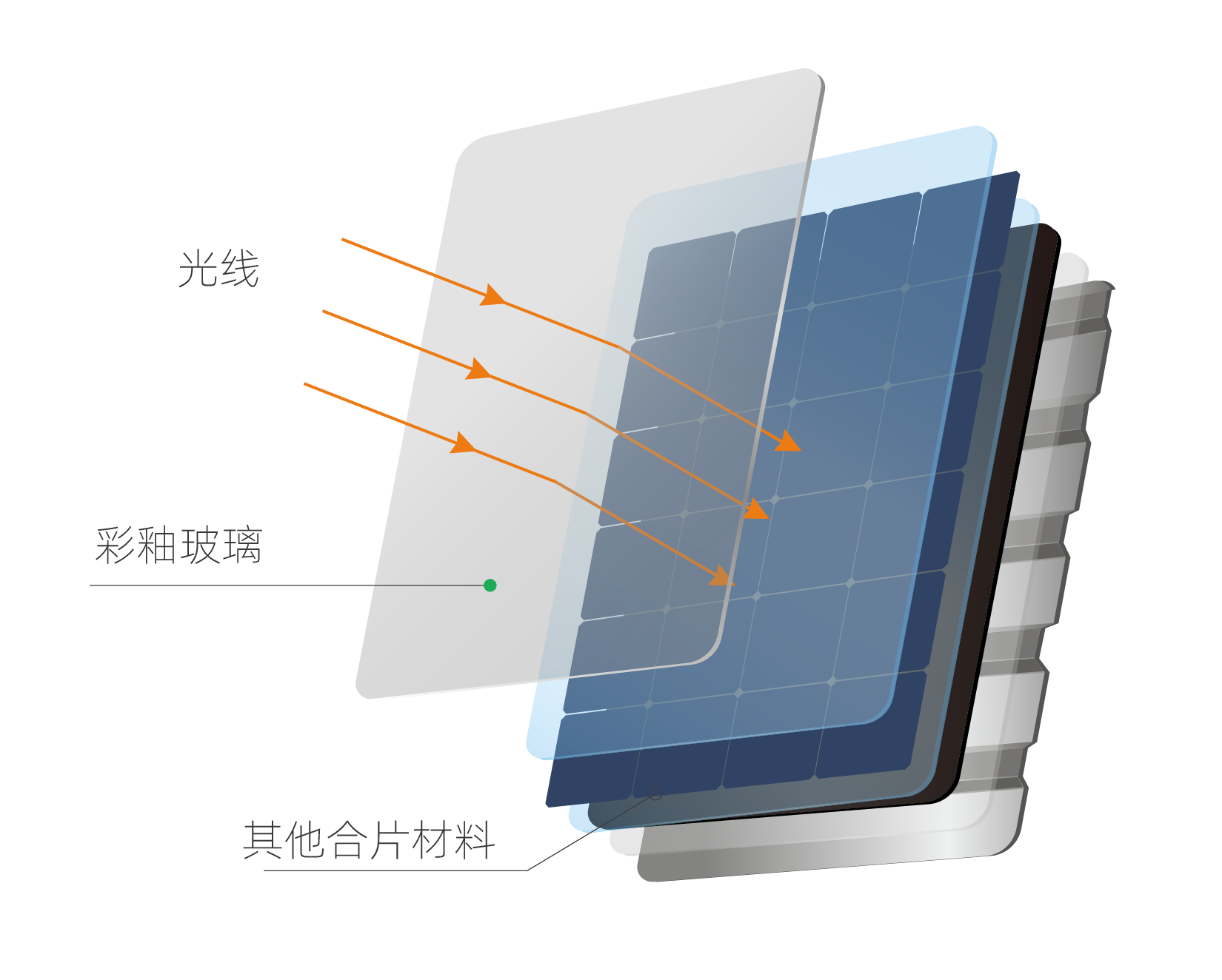研发过程充满挑战,窑炉温度过高,玻璃会软化变形;温度偏低,釉料无法熔融牢固,易褪色。历经多次测试与工艺调整,团队终于掌握了从釉料配方到烧结工艺的全套关键技术,研制出能实现“透光不透明”效果的专属釉料——既能完美呈现设计色彩与纹理,又能让光线有效穿透,被下方的电池片吸收。这项从0到1的突破,为建筑光伏一体化产品的建材化、美学化扫除了关键障碍。