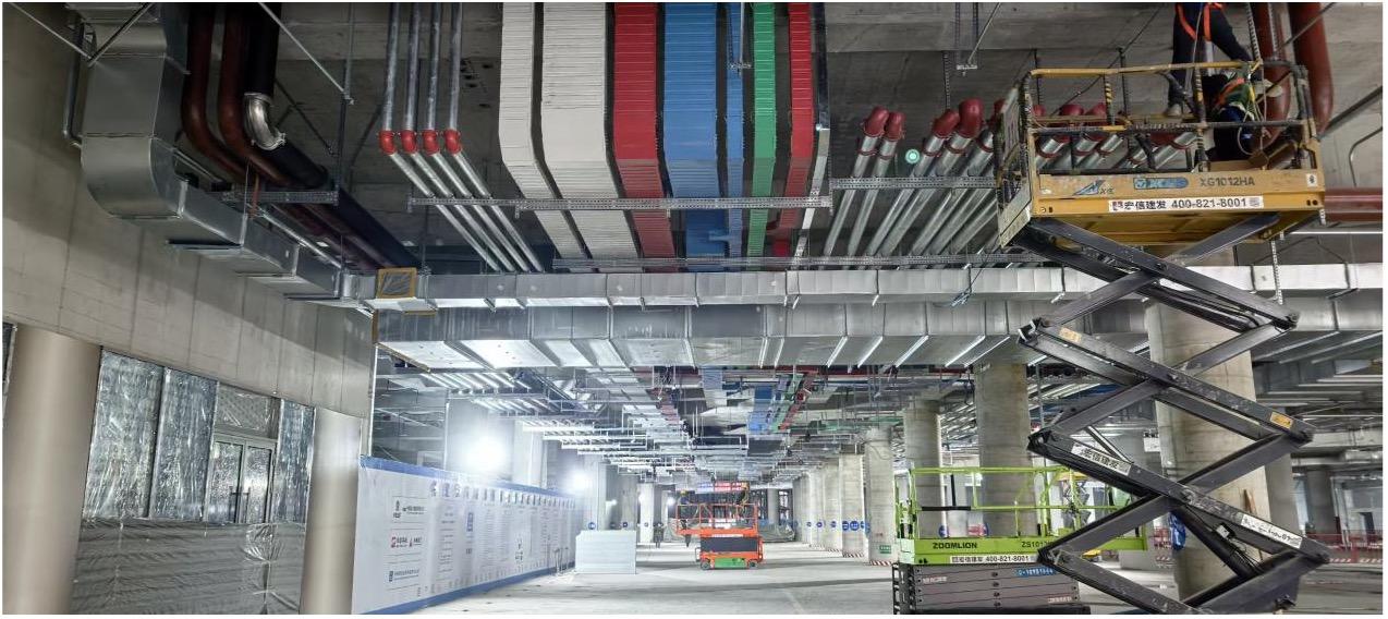 除了在施工细节上精益求精,这群青年建设者更在科技创新上下功夫。“多专业交叉作业,管线错综复杂,二次配管工程量大、难点多,我们通过BIM技术对各专业进行正向深化设计,切实优化传统施工流程,为项目高效推进筑牢技术保障。”项目青年总工朱鹏说。