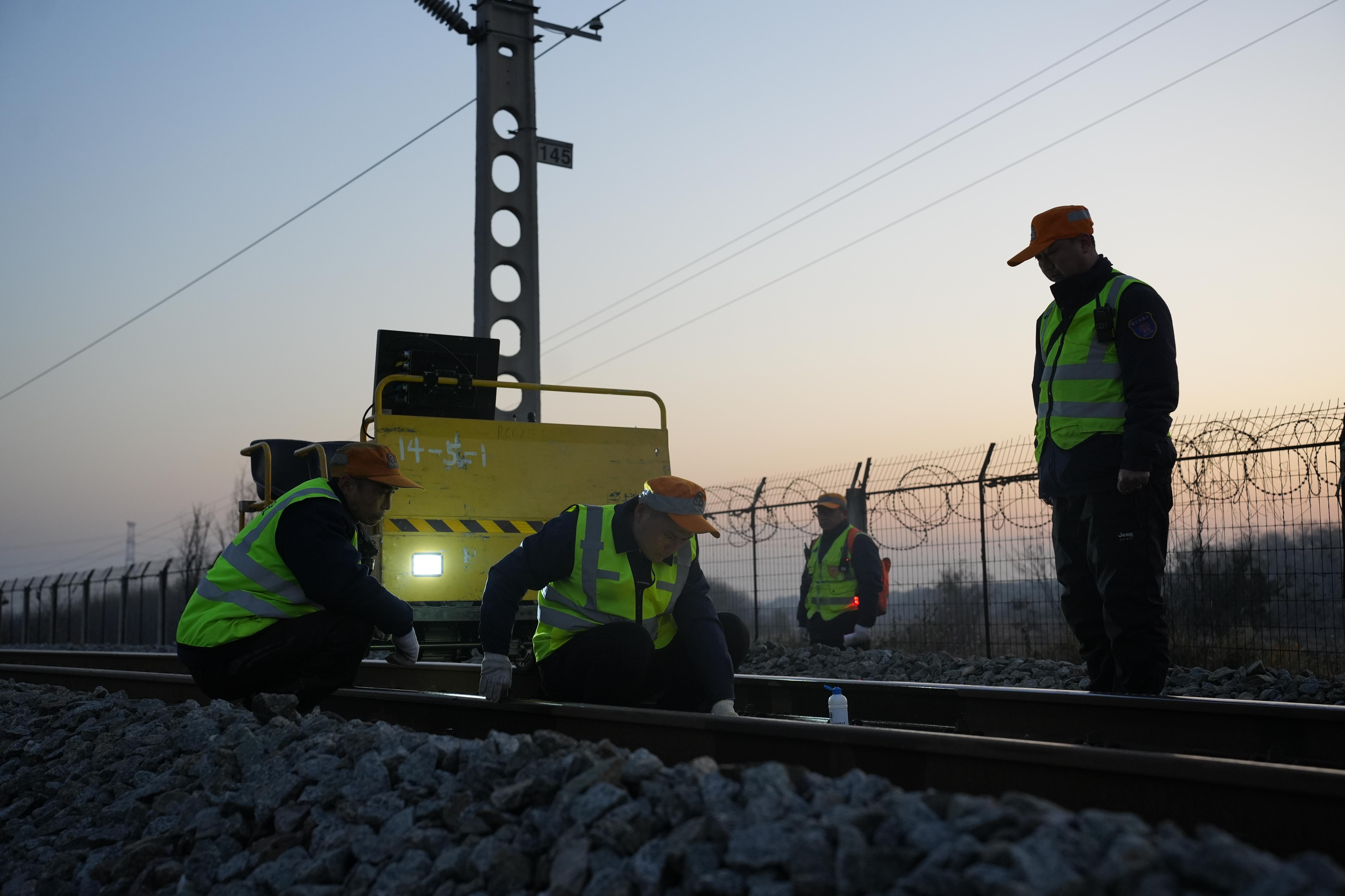 2月14日凌晨4时,渭北平原夜色未褪,寒意刺骨。中国铁路西安局集团公司延安工务段孙镇探伤工区,几名铁路探伤工正忙着装车、检查设备,新一天的钢轨“体检”即将开始。