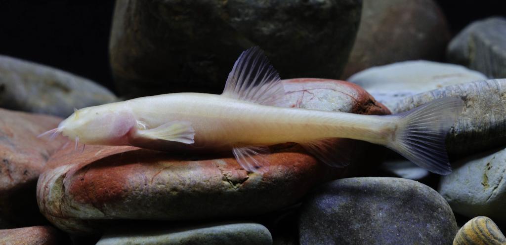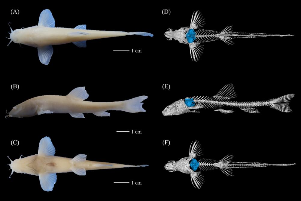 “纳雍盲高原鳅”被发现于贵州省纳雍县张家湾镇的一处地下溶洞中。作为典型的穴居鱼类,该物种演化出鲜明的洞穴适应性特征:个体体形偏小,鳞片已完全退化消失,身体呈透明淡粉色;眼睛高度退化,部分个体仅残留细小的黑色眼点;同时,其附肢适度延长、感觉系统发达,以此适应黑暗、封闭的地下环境。通过形态学对比与分子生物学检测证实,它被确认为从未被记载的新种。