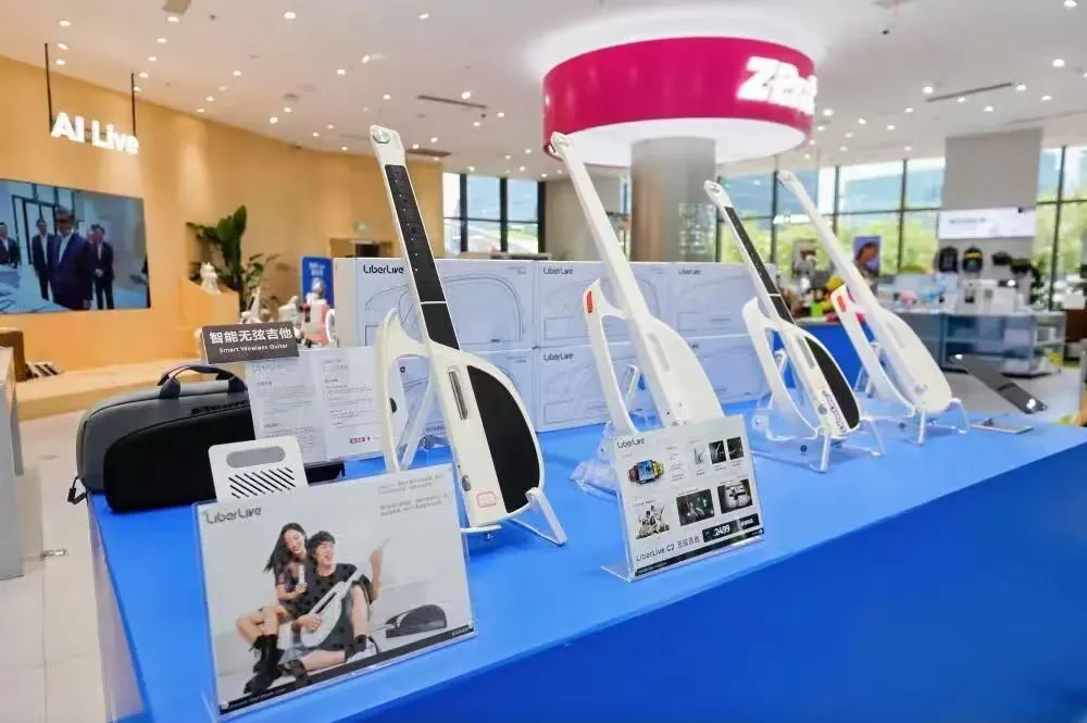 如果说仿真宠物温暖人心,那么音乐科技则点燃了创作的乐趣。左手按住和弦垫,右手拨动任一拨片,即使没有乐理基础,也能即兴来上一首……在深圳南山的一家黑科技旗舰店,LiberLive C2无弦吉他吸引了不少海外游客驻足选购。