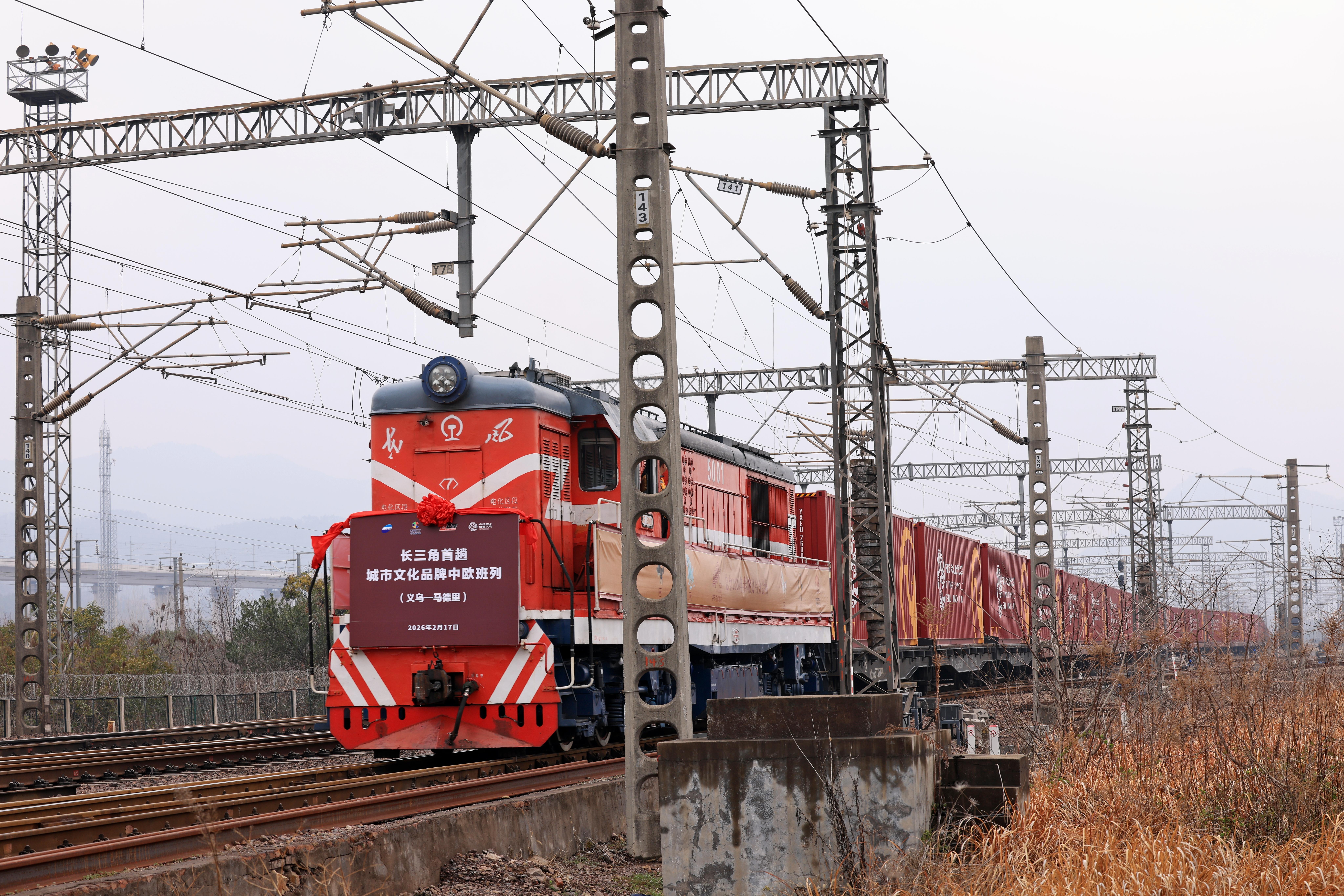 记者2月17日从中国铁路上海局集团有限公司(以下简称“上铁集团”)获悉,当天10时许,一趟满载110标箱文化用品、日用百货、医疗器械等出口货物的中欧班列,从铁路义乌西站开出。班列将经阿拉山口口岸出境,历经18天左右抵达西班牙马德里。这趟班列是农历马年长三角开出的首趟中欧班列,也是义乌城市文化品牌班列首次开行。