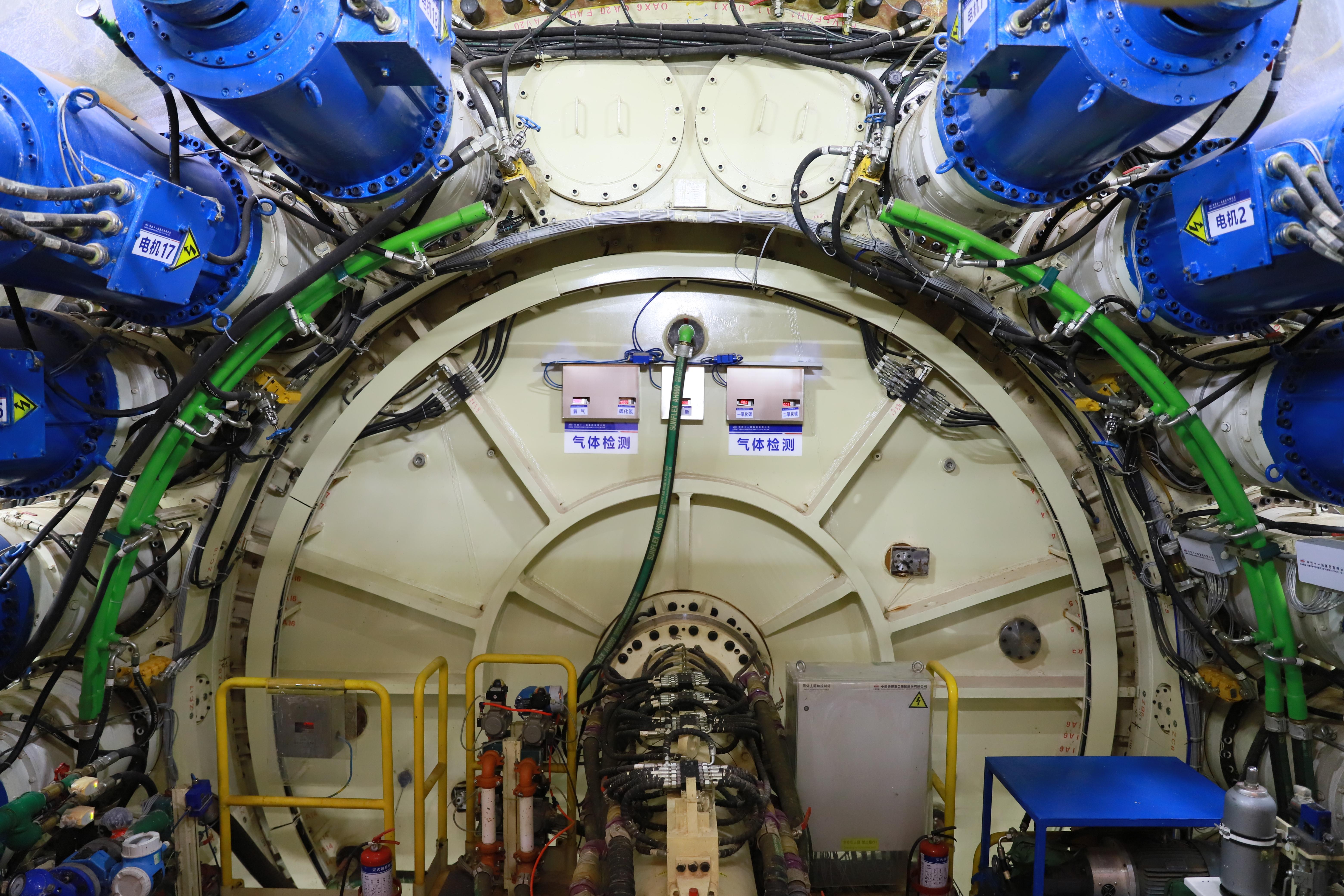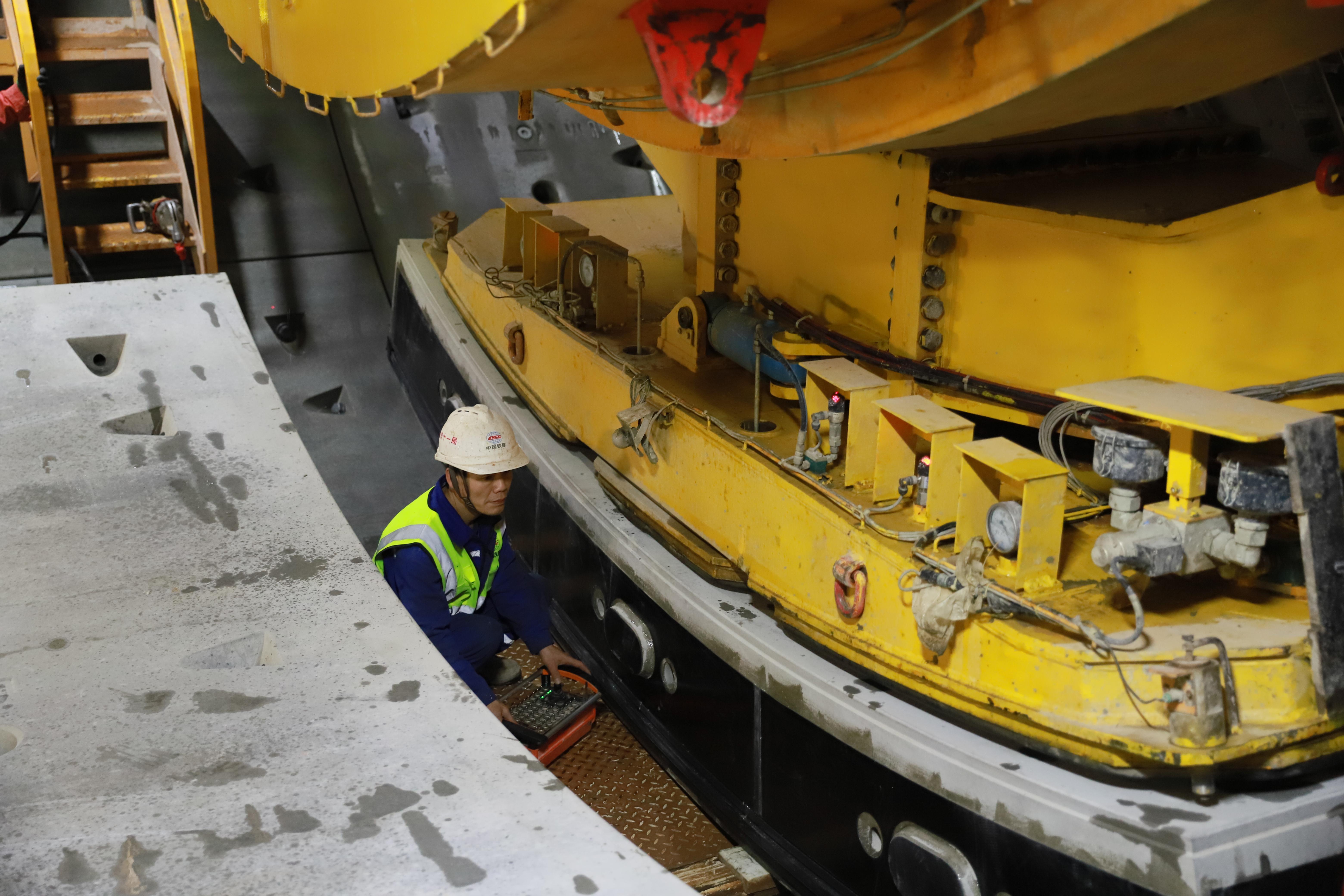 2号盾构井的长方形井口长边仅24米,盾构机如何进入?李碧波介绍:“我们采用分体始发工艺,刀盘率先入井,前方掘进、后方拼装,仅用41天完成拼装,创造了全国新纪录。”