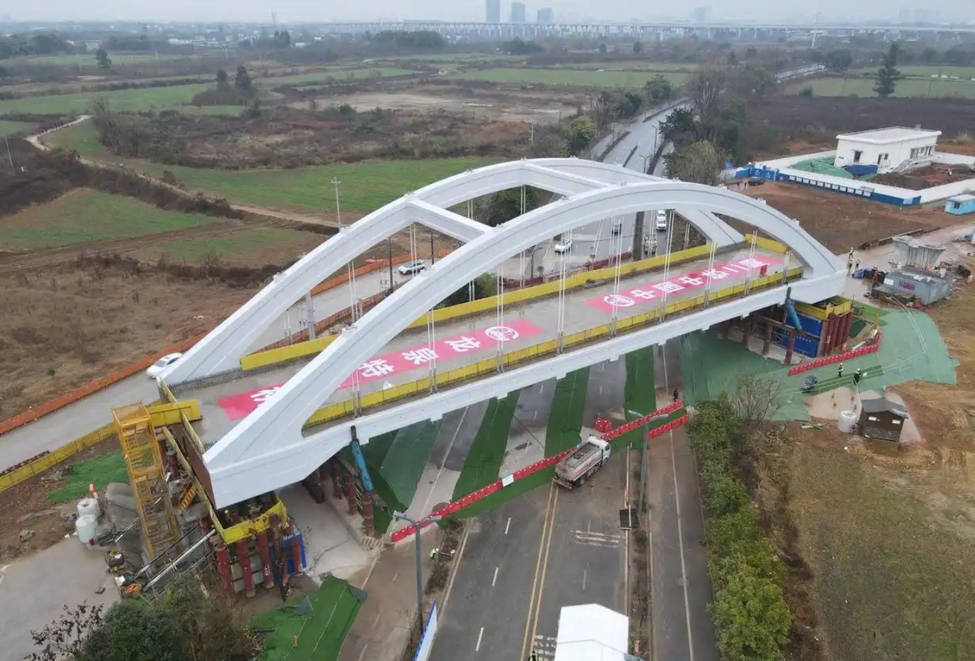 与隧道在地下穿越不同,这座大桥面临的是跨龙石路系杆拱桥“高空作业、低位成桥”的挑战。中铁二局成渝中线高铁(四川段)项目一分部总工程师姚永章告诉记者,“这要求我们在高空把桥浇筑好,再稳稳地‘落’下来。”