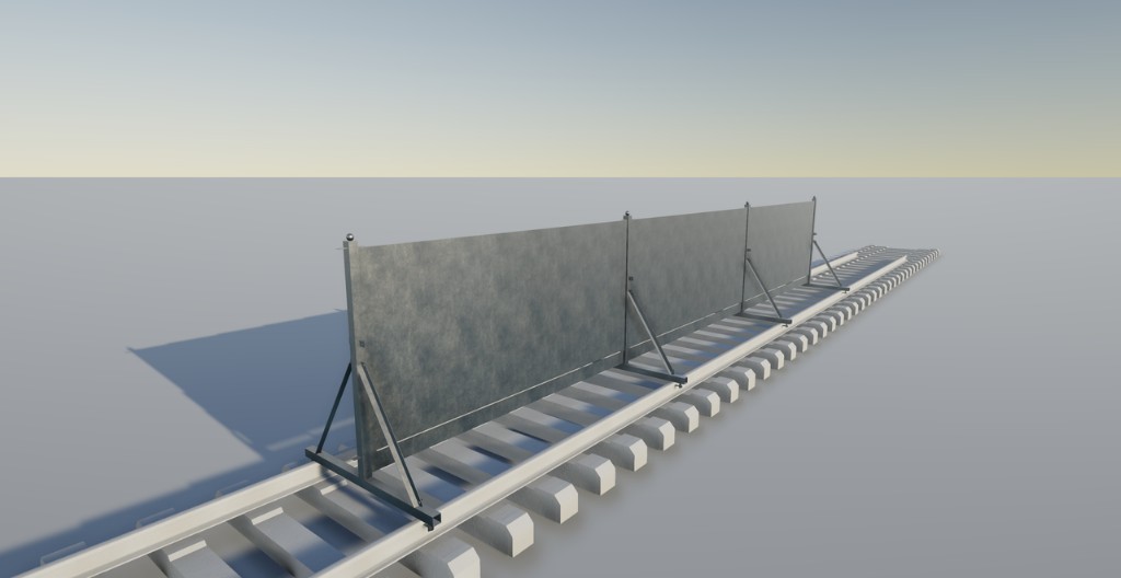 针对这一痛点,技术团队创新研发出夹轨式便捷围挡。该设备采用工厂预制模块化构件,通过夹轨底座直接卡固在钢轨上,无需破坏道床,安装快捷、牢固可靠。产品采用双斜撑与防倾覆设计,稳定性强,可抵御12级大风,极端天气下仍能保障安全。