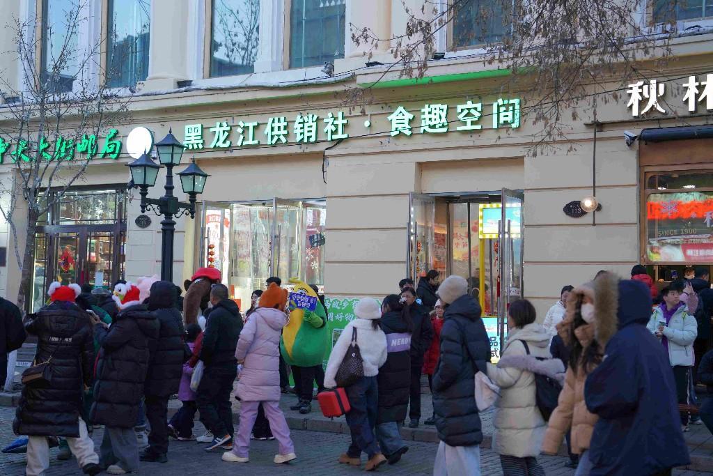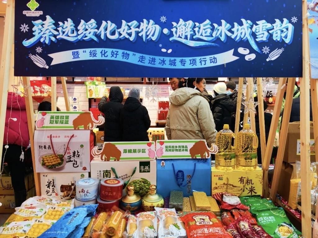 2月19日,黑龙江省青冈县在哈尔滨中央大街开展以“猛犸故乡育臻品 青冈好物进冰城”为主题的推介活动。