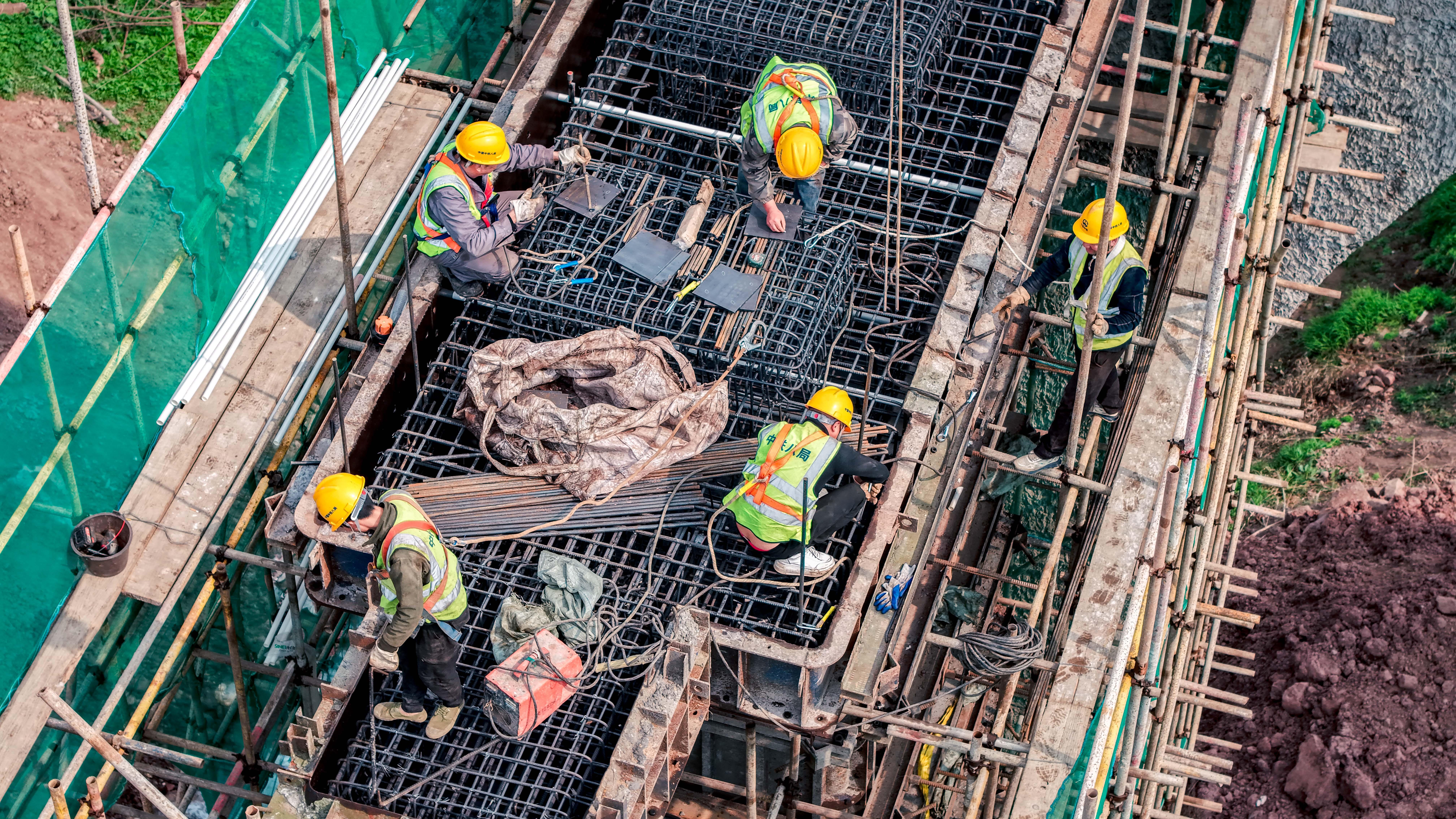 在西安至重庆高铁合川东制梁场,施工现场一片忙碌,制梁和架梁同步推进。一孔长32.6米、宽12.6米、重697吨的预制箱梁在20名工人协同配合下,用时约50分钟安装到位。中铁十四局西渝高铁合川东制梁场总工程师敬勇介绍,春节期间计划完成箱梁预制7孔、架设8孔。目前,西渝高铁康渝12标段3座隧道已全部贯通,28座桥梁下部结构完成26座,正全力攻坚制梁、架梁工程。