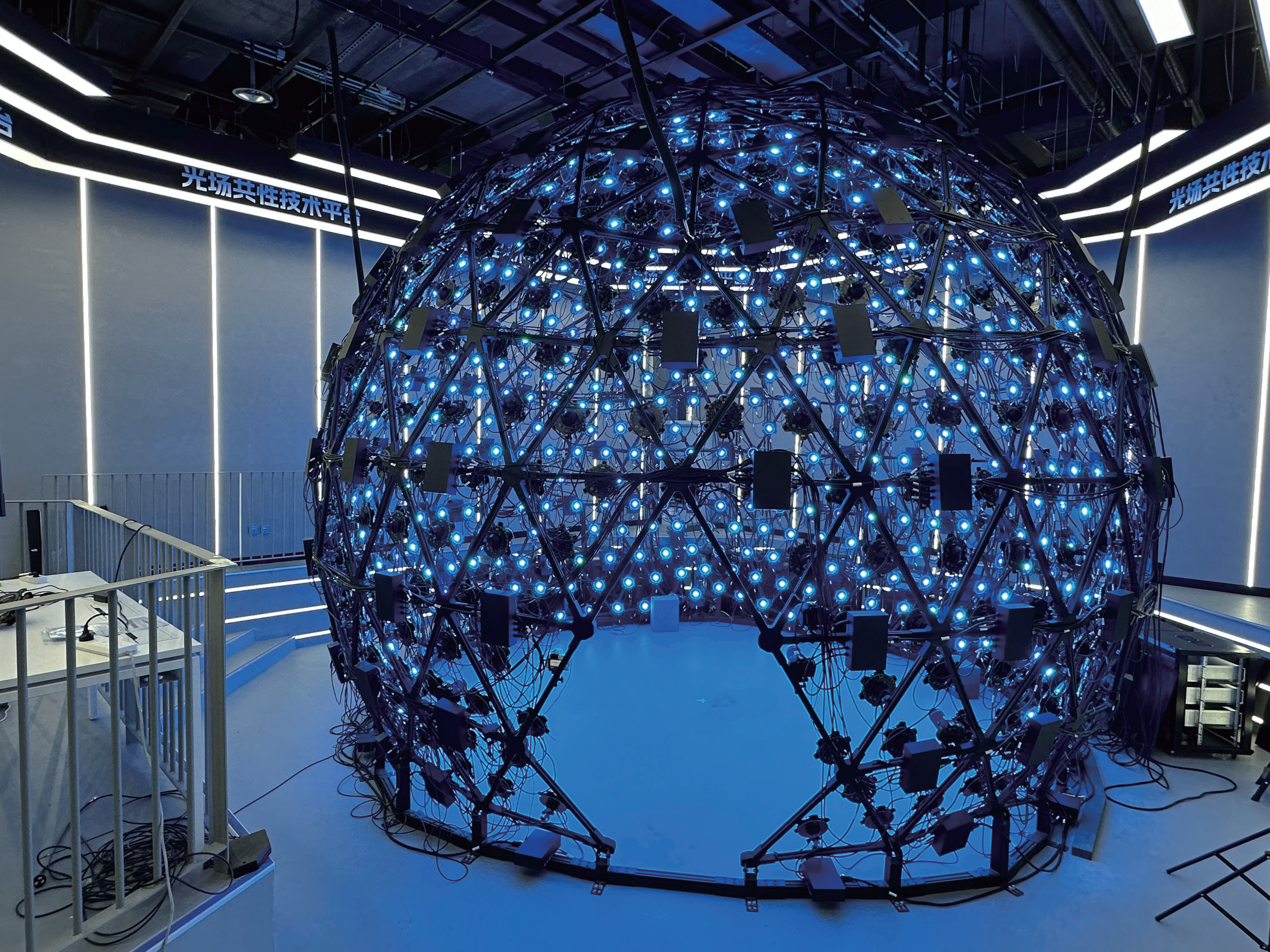 据了解,本次《梦底》制作过程中,LuStage(光场重建系统)体积视频技术实现两大突破。首次实现体积视频领域的数字人画质达到广电超高清应用标准。依托4D高斯泼溅技术实现了数字人1:1的超写实还原,表情、服装的还原度都远超传统数字人。通过光场重建系统构建的长短焦组合相机拍摄阵列,同时实现了刘浩存全身动作与面部特写拍摄采集重建。首次实现数字人与虚实环境的自然交互和深度融合。一方面,是利用高精度标定技术,实现空间尺度精准还原,以及数字人上下楼梯等复杂虚实互动,动作衔接自然流畅;另一方面,通过光影优化处理技术,生成了数字人身上光影和地面阴影,实现数字人跟真实环境的自然匹配融合。