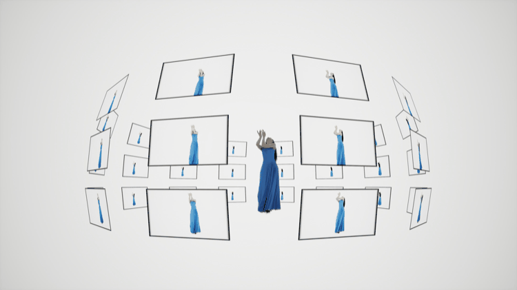 节目中,演员刘浩存与5位亚毫米级高精度数字分身同台共舞、跨时空互动,在诗意化的舞台空间中诠释歌曲情感内核。依托360°高密度多视角同步采集与光场信息建模,系统精准还原演员肢体动态、发丝纹理与微表情细节,实现真人与数字分身的无缝同框、自然穿行与流畅互动。