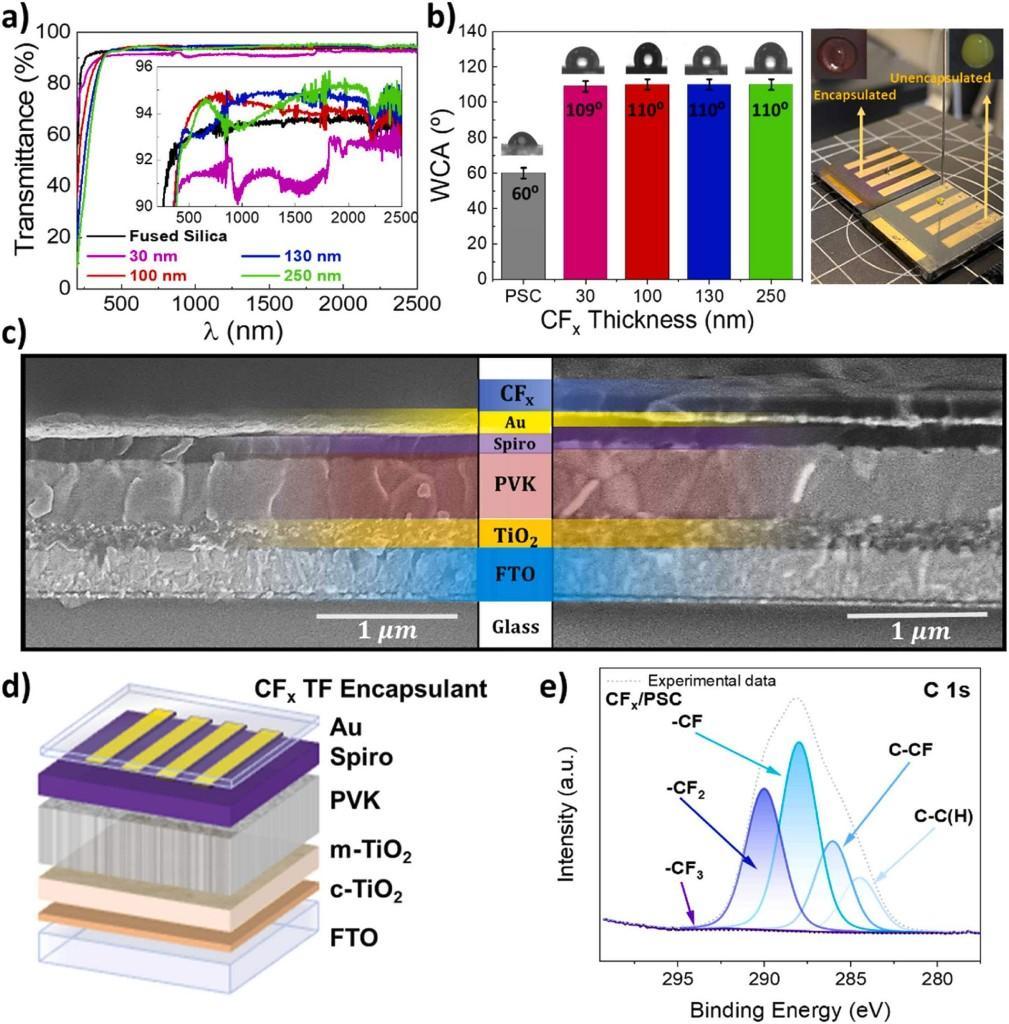 团队巧妙运用等离子体技术,在钙钛矿电池表面沉积了一层约100纳米厚的保护薄膜。这层薄膜具有双重功效。一方面,它能保护电池化学性能,增强其光吸收能力;另一方面,其表面能通过摩擦接触生电,将雨滴动能瞬间转化为电流。