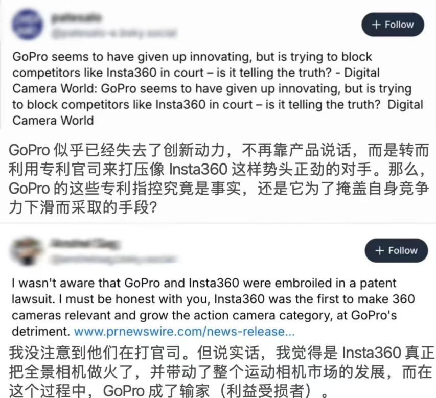 这起调查也引发了海外市场的广泛讨论。有用户评论称:“GoPro似乎失去了创新动力,不再靠产品说话,而是利用专利官司打压对手。”另一位网友则直言:“是Insta360把全景相机做火了,并带动了整个运动相机市场的发展。在这个过程中,GoPro成了输家。”