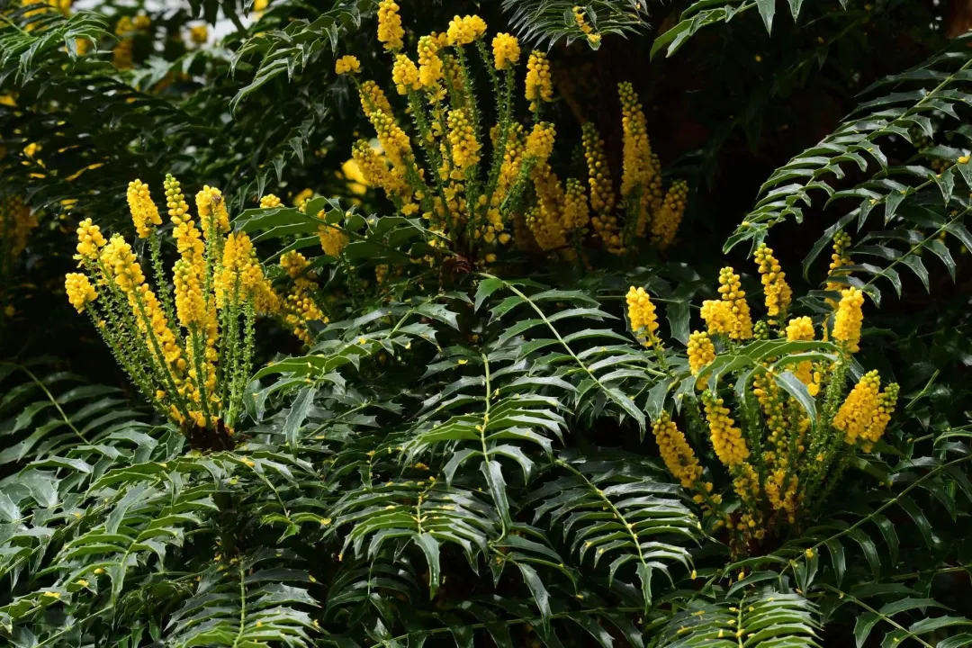 还有一些物种的名字,自带“故事感”。比如石蒜,又名彼岸花、蟑螂花,因在日本“秋彼岸”节气开花,被称为彼岸花。它的叶片狭长,秋季出叶,花期时开红色或白色花朵,花瓣反卷,模样奇特,背后还承载着凄美的民间传说。十大功劳是小檗科植物,因根、茎、叶均有显著药用价值,被民间赞誉为“十大功劳”,名字直白又有分量,其叶片呈针状,开黄色小花,是常见的药用植物与观赏植物。