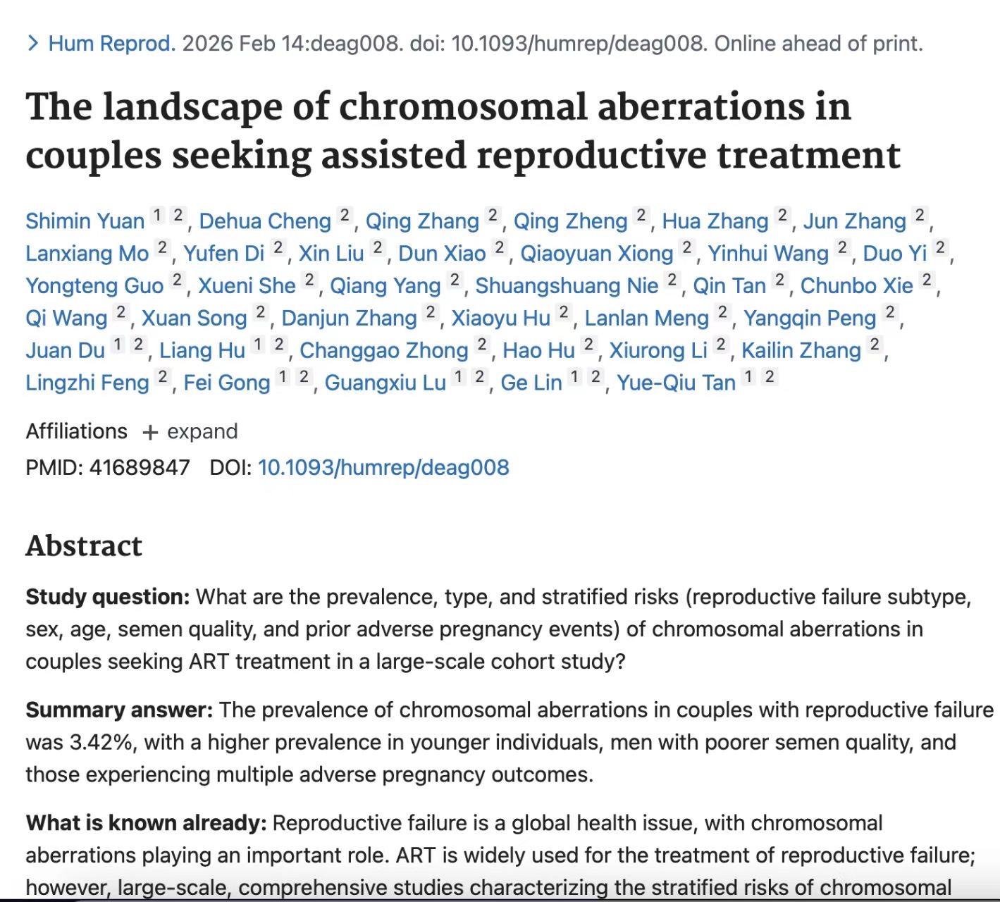 研究明确了异常染色体以结构异常为主,易导致生育时自然流产、死胎,以及出生孩童畸形与智力低下。研究为临床精准诊疗提供了坚实的科学支撑,有助指导医生精准锁定高风险人群,大大提升病因诊断效率,有效降低流产风险,提高试管婴儿的好孕率,为预防出生缺陷筑牢第一道防线。