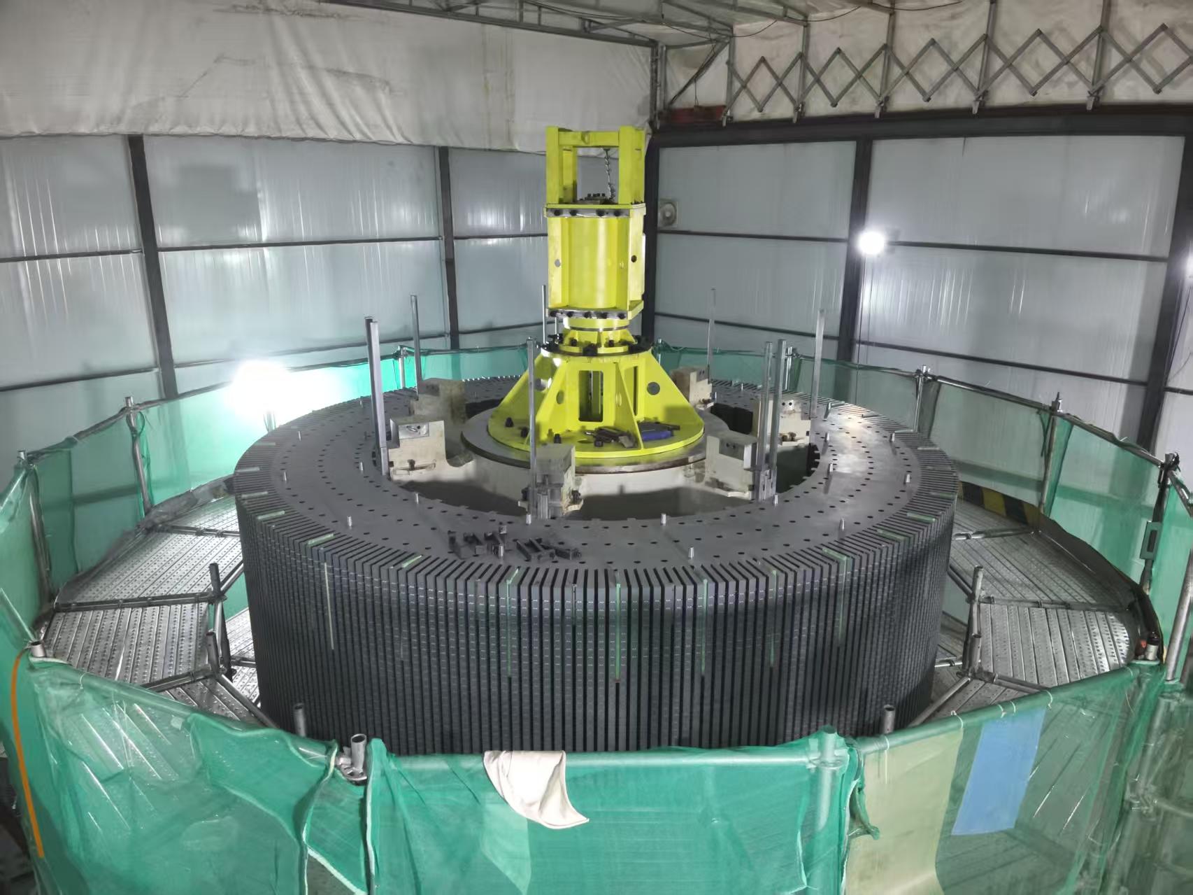 转子铁芯是变速抽蓄机组的关键部件,由6万多片0.65毫米厚度的硅钢片叠压而成。“我们要先通过加热把转子铁芯压紧牢固,再用切向键和径向键把铁芯和中心体锁在一起,这对整个工艺管控要求非常高。”赵磊指着高3.5米、直径5米的机组转子铁芯说,“在自主研制过程中,我们坚持正确的技术路线,通过严苛的实验论证、高质量的生产制造,攻克了一系列技术难题。现在进入现场安装的关键环节,安装质量直接决定机组能否高效稳定运行,施工工艺与操作规范更是设备投用后性能达标的关键,我们的工作容不得半点马虎。”