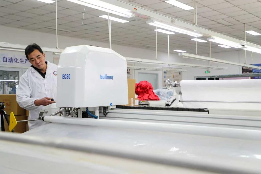 在成衣环节,吊挂线、自动裁床、计算机辅助设计到计算机辅助制造的无缝衔接,让车间“在天上运作”,实现“人不用来回搬,工序在空中走”。这不仅提升了效率,也为柔性化、小批量、多款式生产打下了基础。