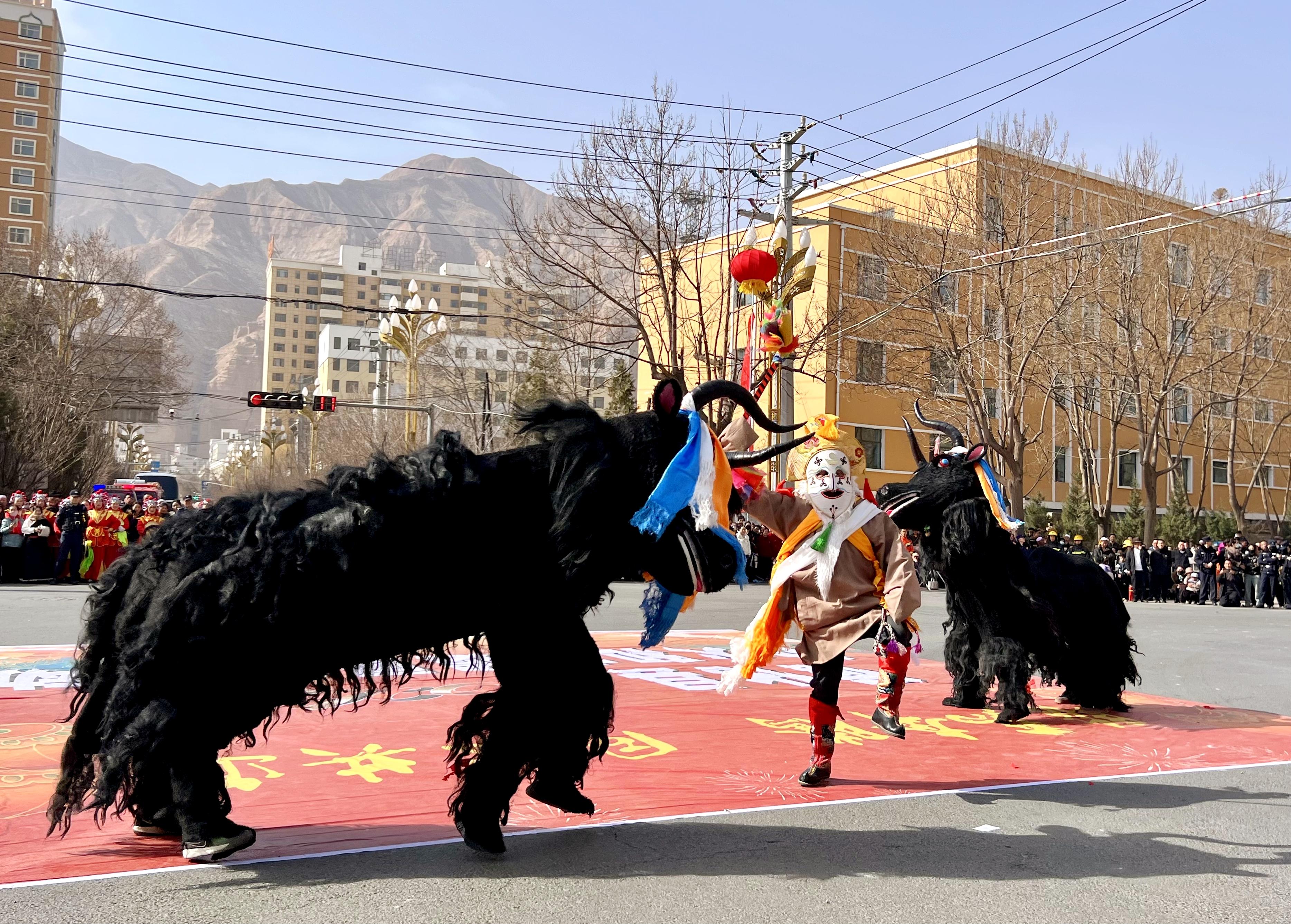 3月2日,青海省海东市循化县2026年“骏马奔腾・同心共进”社火和非遗展演活动开幕。来自该县文体旅游局及9个乡镇的10支社火非遗展演队伍,载歌载舞、各展风采,为广大群众呈现了一场兼具民俗韵味、非遗底蕴与民族特色的文化盛宴。
