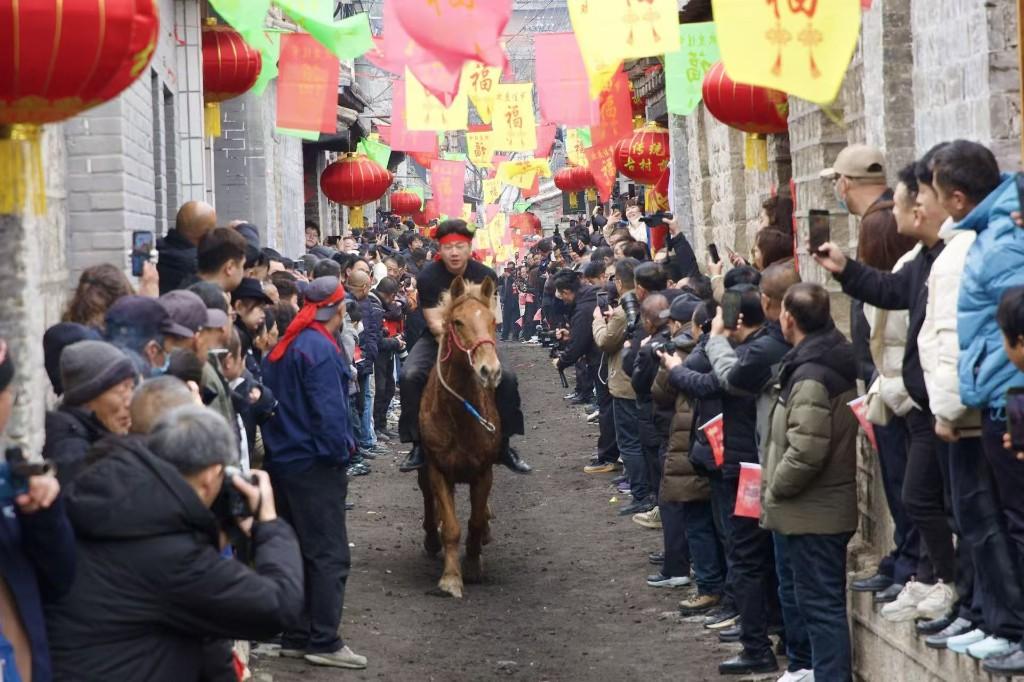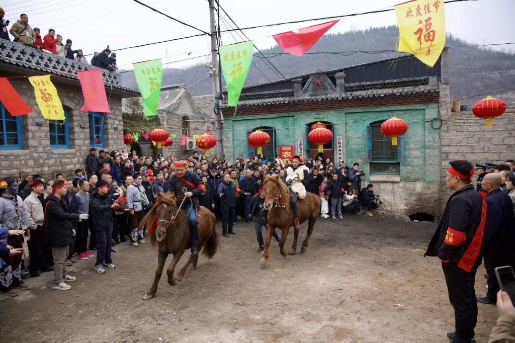 3月4日,在山西省阳泉市平定县娘子关镇下董寨村,国家级“非遗”代表性项目跑马排火爆进行,平日里辛苦劳作的村民们化身技艺高超的骑手,在百米长四米宽的千年古街里上演速度与激情,祈祷新的一年风调雨顺、国泰民安。