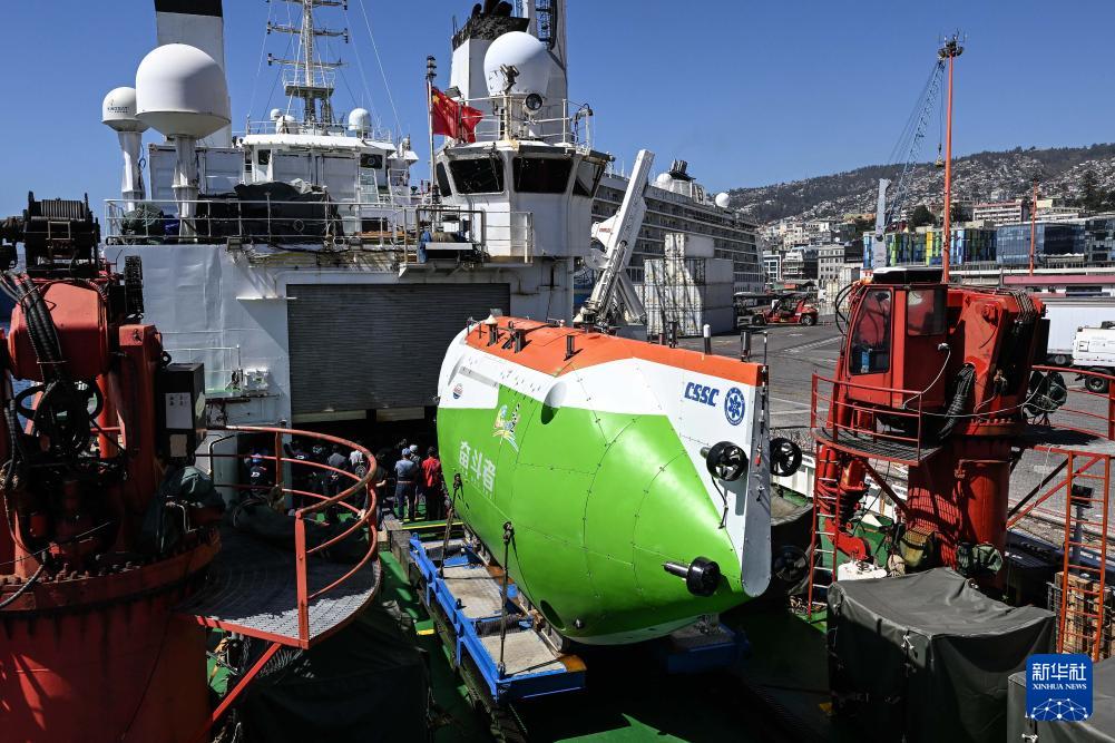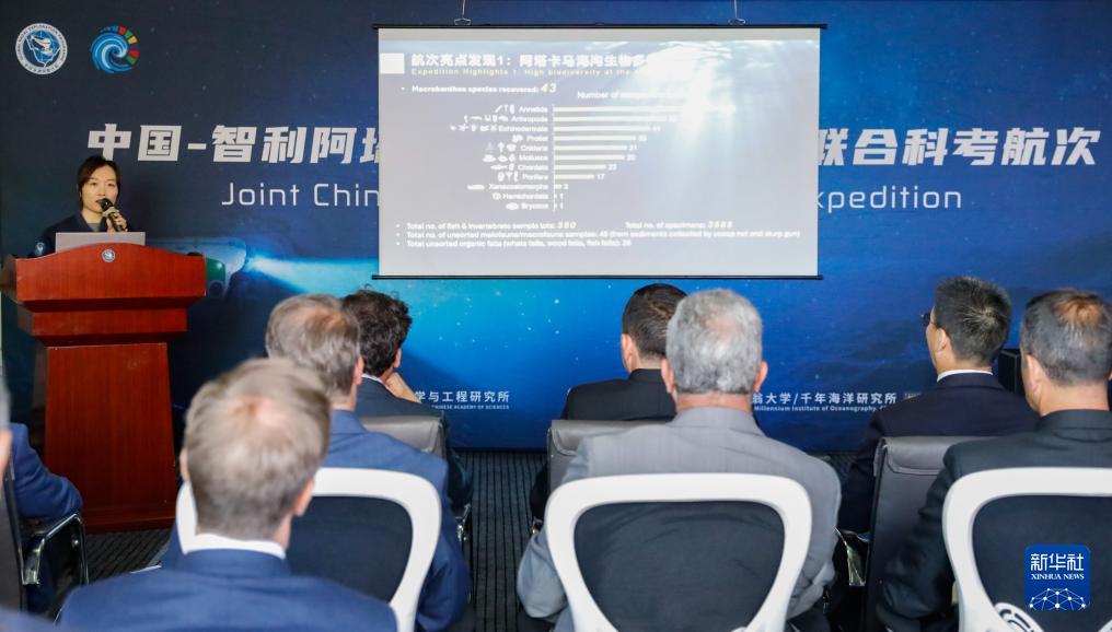 在停靠于智利瓦尔帕莱索的中国“探索一号”科考船上,中国-智利阿塔卡马海沟载人深潜联合科考航次5日举行总结仪式。航次顺利完成了包括探索阿塔卡马海沟生物多样性、化能生态系统和板块俯冲机制等在内的多项任务。