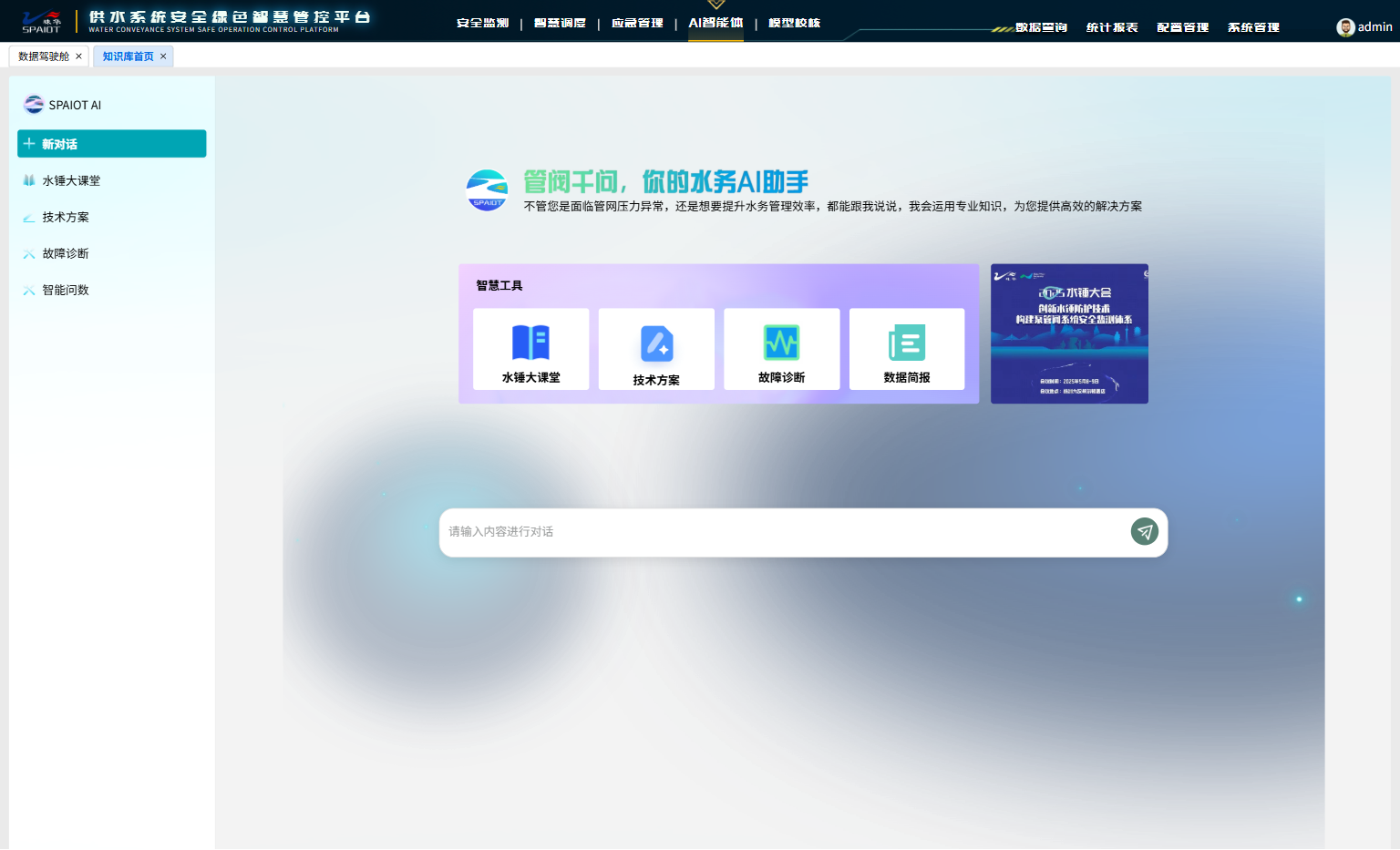 “管阀千问”将复杂的水锤理论与泵管阀专业知识转化为互动问答形式,助力行业技术人员快速提升专业能力。基于RAG知识库与自研Agent平台,自动完成水力模型率定、调度策略分析,将传统人工经验调度升级为分钟级精确调度。智能体还能精准诊断泵管阀各类故障,输出针对性维修建议,同时支持工作人员通过自然语言便捷查询运行数据、分析发展趋势,大幅降低供水行业数据应用门槛。