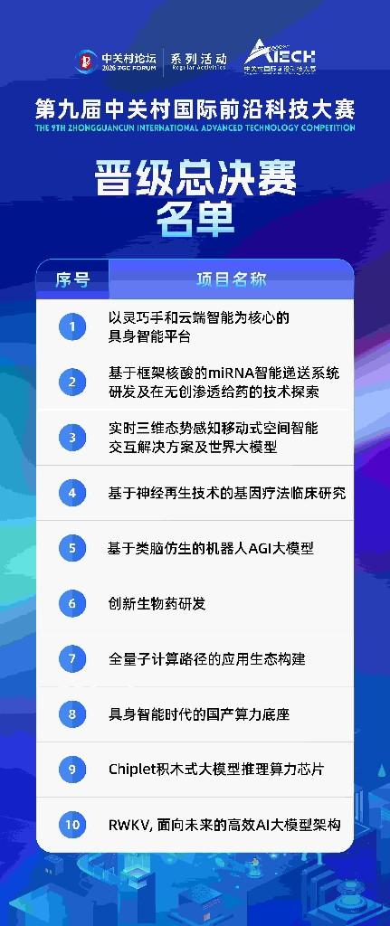 3月11日至12日,2026中关村论坛系列活动——第九届中关村国际前沿科技大赛半决赛在中关村国际技术交易中心举办。经过现场路演与专家综合评审,10个前沿创新项目脱颖而出,成功晋级总决赛,总决赛将于3月26日正式开赛。