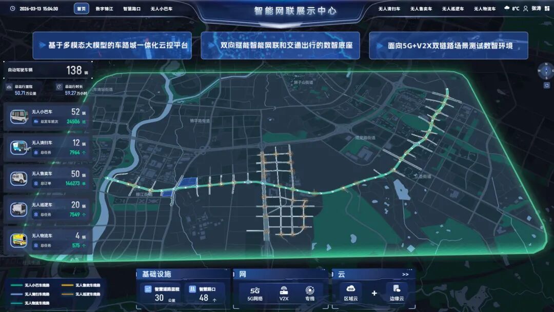 “‘车路协同感知源数据产品(高质量数据集)’,是开放道路‘车—路—云—网—图’全维度交通体系高质量数据集,覆盖交通流量、车辆行为、路况事件等多维度核心信息,具备全栈生态、实时感知、标准易对接等显著特点。”据成都兴锦产业投资有限责任公司相关负责人介绍,作为锦江区“车路云一体化”示范区建设的核心数据底座,该产品可广泛服务于智慧交通管理、基础设施规划、智慧物流调度、自动驾驶研发测试、保险风控创新等多元场景,为智能网联相关产业高质量发展提供坚实、可靠的数智支撑。