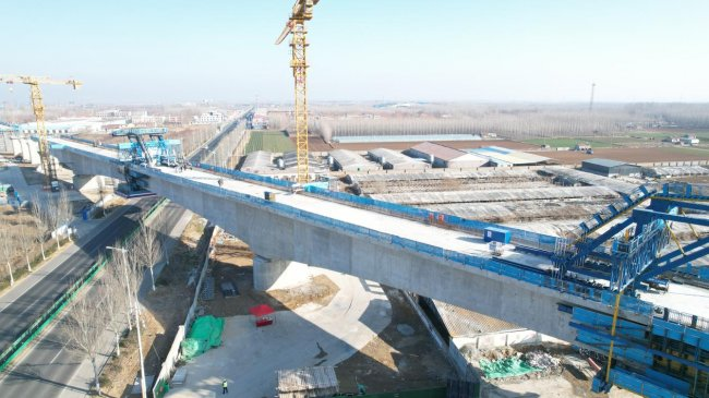 3月13日,由雄安高速铁路有限公司建设、中铁四局承建的潍宿高铁潍坊特大桥跨G206国道大跨度双线连续梁顺利合龙,标志着项目完成架梁通道重要“节点”工程,为后续箱梁架设工作奠定坚实基础。