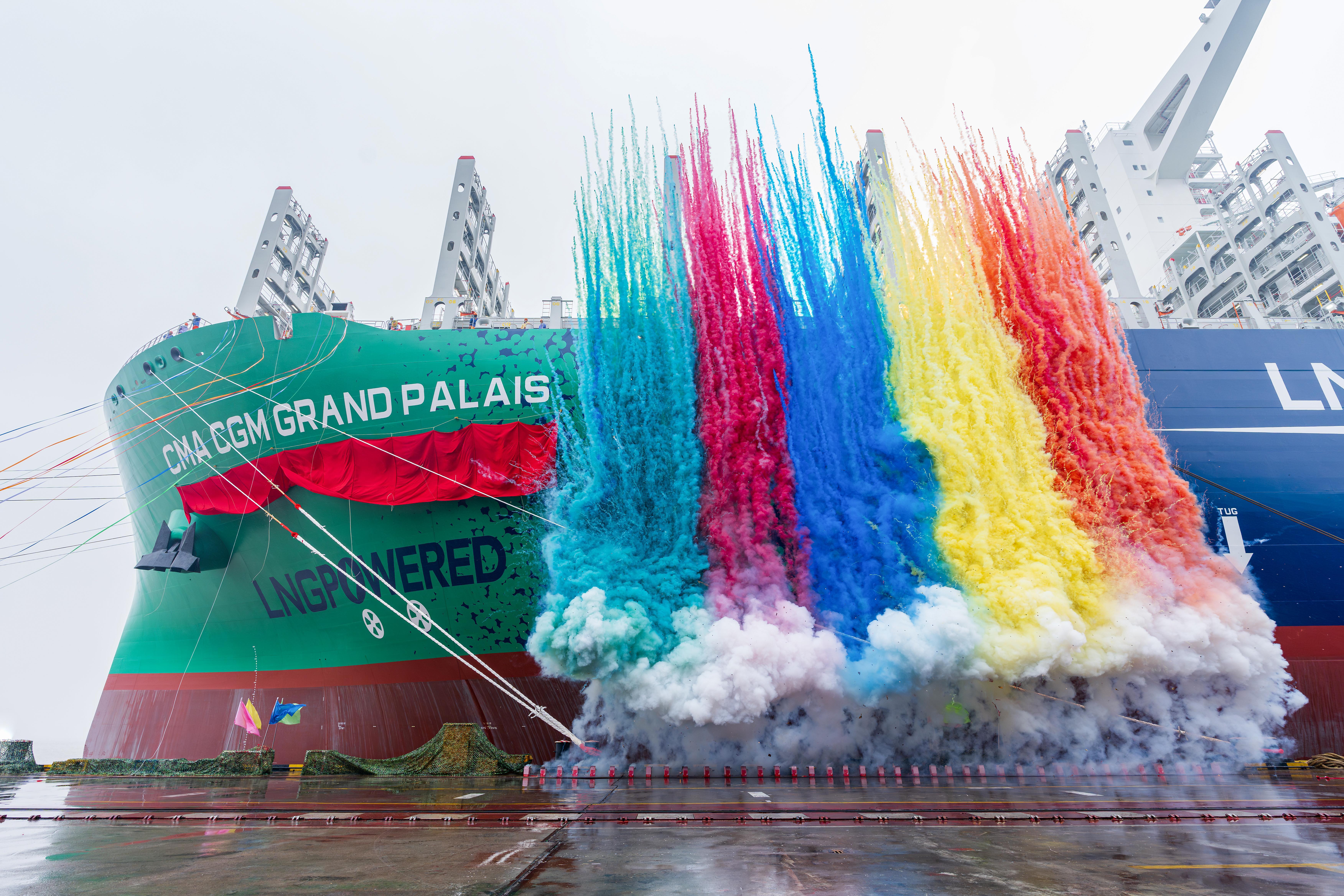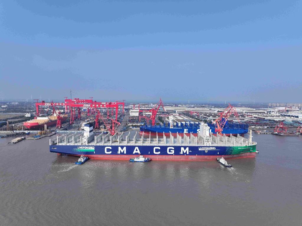 3月17日,由中船集团旗下沪东中华造船(集团)有限公司建造的全球最大24000TEU级液化天然气(LNG)双燃料动力集装箱船“达飞 巴黎大皇宫”号,提前7个半月在上海长兴岛命名交付。这是沪东中华为法国达飞集团建造的第20艘大型集装箱船,为中法两国在绿色航运与高端制造领域的深度合作增添新的典范。