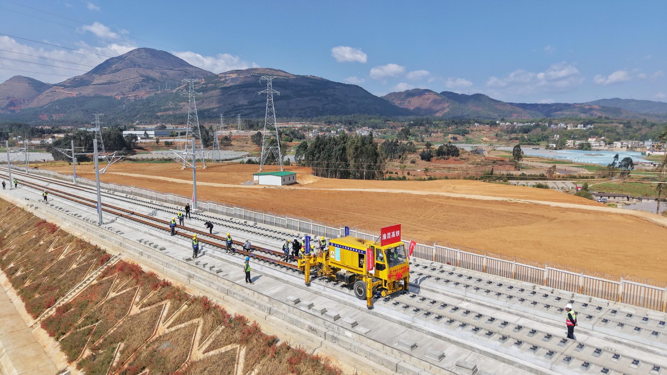 随着铺轨施工的正式启动,渝昆高铁建设全面迈入攻坚冲刺阶段。目前,路基、桥梁工程已圆满收官,全线控制性工程昭通隧道即将实现全隧贯通,新建站房已进入装修收尾的关键时期。