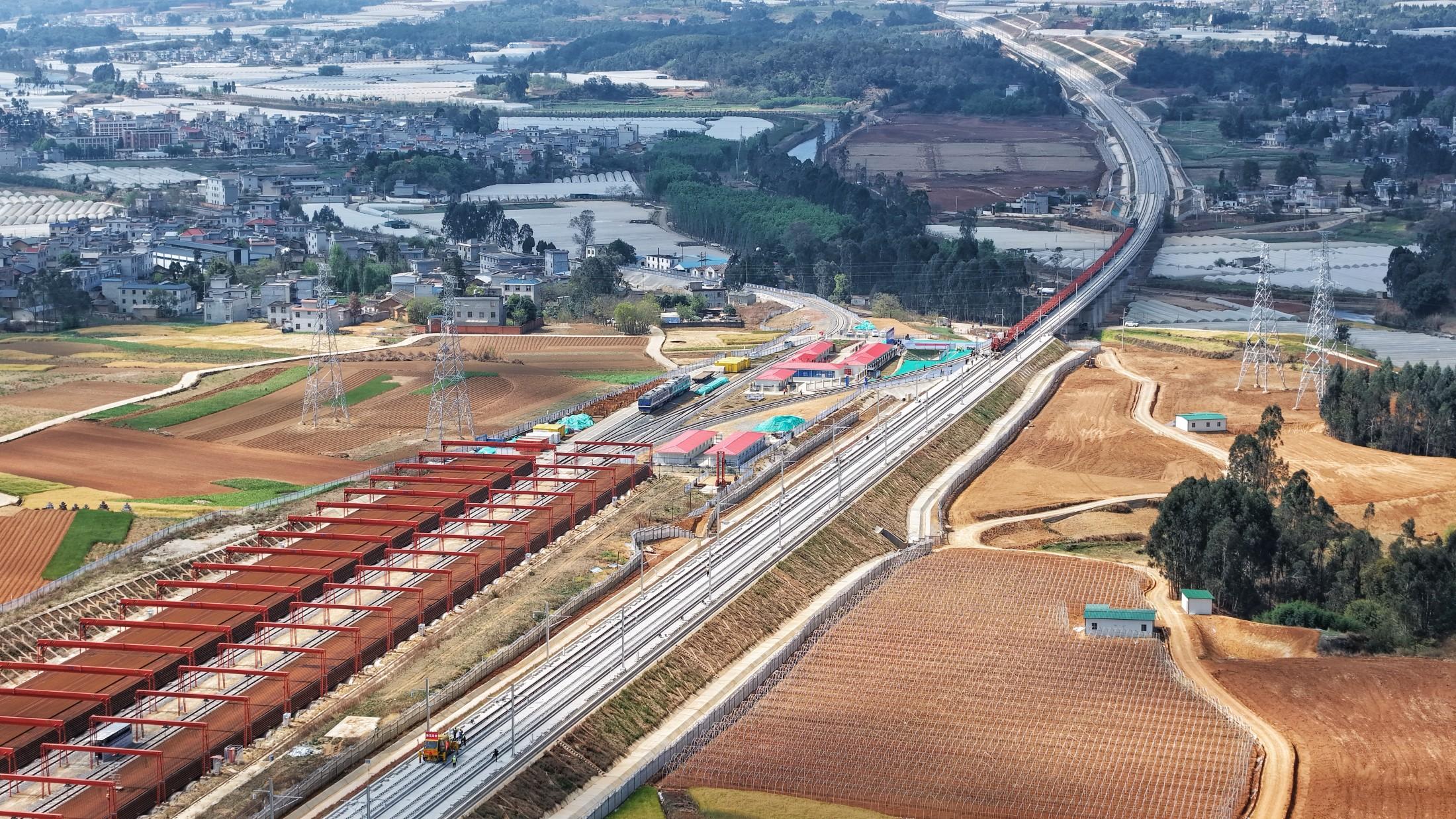 渝昆高铁线路纵贯云贵高原乌蒙山腹地,地质地貌错综复杂,桥隧比高达87.4%,超10公里的长大隧道多达10座。此次铺轨施工任务,涵盖上下行钢轨铺设846公里、无砟轨道道岔50组、无砟轨道钢轨伸缩调节器16组等重要工程,每一项都是对建设团队技术和毅力的考验。