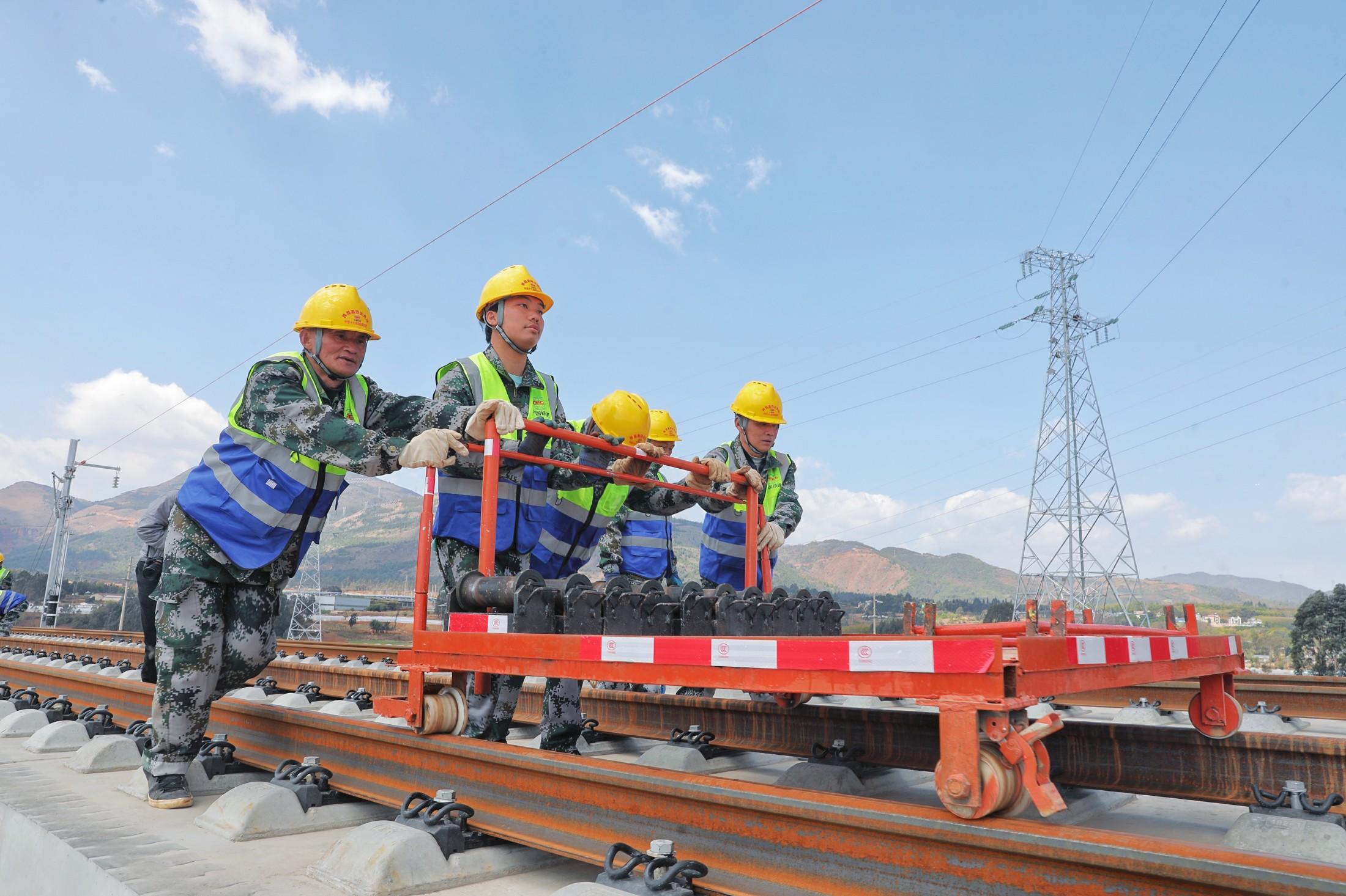 18日,在云南昆明崔家庄铺轨基地,随着第一对500米长钢轨被平稳地铺设在无砟轨道上,由中铁十六局负责施工的渝昆高铁云南境内铺轨工程正式启动。