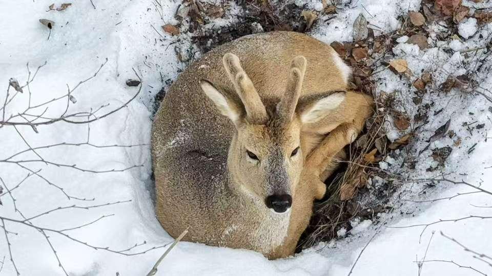 3月17日,在饶河农场37.8公里边境管控区,巡护队员在巡护中发现成群的狍子在林间觅食活动。这一场景,成为了农场生态保护成效的见证。
