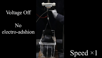 在一场与行业传统材料(P7670)的“吸力大比拼”中,EIEDE在一块金属网电极上的吸附强度达到了31.75千帕,是传统材料的488倍。“这不仅是对平整表面,就连坑洼的金属片、镂空的金属网甚至细细的金属丝,它都能一把‘抓’住。”西北工业大学机电学院副教授刘磊说,“这为爬壁机器人吸附粗糙表面、工业机械臂无损抓取异形精密件提供了全新的想象空间。”