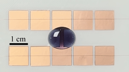 通过一个电场开关,就能让液滴的铺展程度实现超大范围的调控。刘磊表示,基于此原理开发的液滴吸附装置,在施加电压时吸附液滴,撤去电压则释放液滴,实现了液滴的稳定运输。