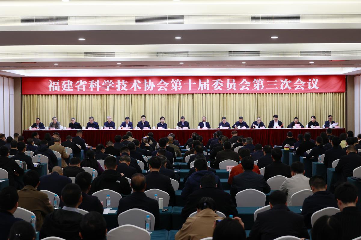 3月20日,福建省科协十届三次全委会在福州召开。会议总结回顾全省科协“十四五”及2025年工作情况,研究部署“十五五”及2026年重点工作任务,审议《福建省科学技术协会事业发展“十五五”规划(2026-2030年)》。福建省科协主席、中国工程院院士付贤智作工作报告。福建省科协荣誉委员、中国科学院院士谢华安,省科协副主席、中国工程院院士夏宁邵,省科协副主席、中国科学院院士郑南峰出席会议。福建省科协党组书记、副主席游建胜主持会议。