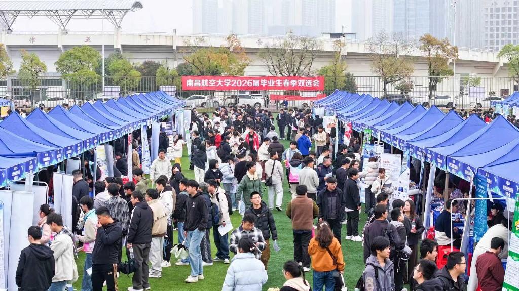 3月20日,南昌航空大学在前湖校区足球场举行2026届毕业生春季双选会。该校党委书记李德平,党委常委、副校长周世健深入招聘会现场,详细了解活动组织情况。此次双选会邀请省内外300余家企业参与,涵盖航空航天、人工智能、电子信息、有色金属、装备制造、新能源、土木建筑、金融产业等多个领域,提供就业岗位数8155个,专业需求基本覆盖学校现有本、硕学历所有学科专业,吸引了学校及周边高校近7000名毕业生参加。南昌航空大学不断推进毕业生就业工作,深入挖潜拓宽就业渠道,保障就业岗位充分供给。