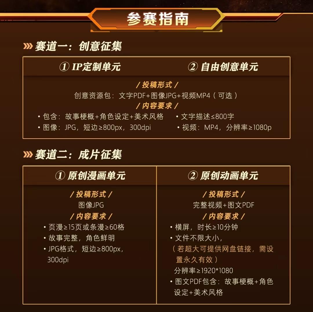 大赛以“链接创意沃土,孵化产业未来”为核心,着力搭建创意征集与成片征集的双赛道体系。其中,创意征集板块涵盖IP定制单元与自由创意单元,重点扶持早期原创创意。创作者仅需提交故事梗概、角色设定及美术风格方案即可参与投稿,以低门槛参与模式,为优质创意提供充足的生长空间。成片征集板块则包含原创漫画单元与原创动画单元,鼓励创作者提交成熟作品。两大赛道同步开放,覆盖创意全生命周期,助力优质内容从灵感走向现实。
