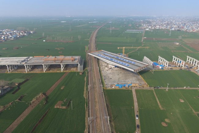 国道107京港线是沟通华北与华南的运输大动脉,在河南省内穿过安阳、郑州、漯河等八市,长约560公里。现有的国道107穿城路段街道化严重、拥堵突出,亟须新建线位破解瓶颈。国道107京港线漯河境新建工程是新建国道107河南境段的重要组成部分,路线全长约69公里,采用一级公路标准,双向六车道设计。此次完成转体的上跨漯阜铁路立交工程,是这条南北大通道上的关键控制性工程,桥梁全长499.44米,公路与铁路近乎正交,交角达88度。