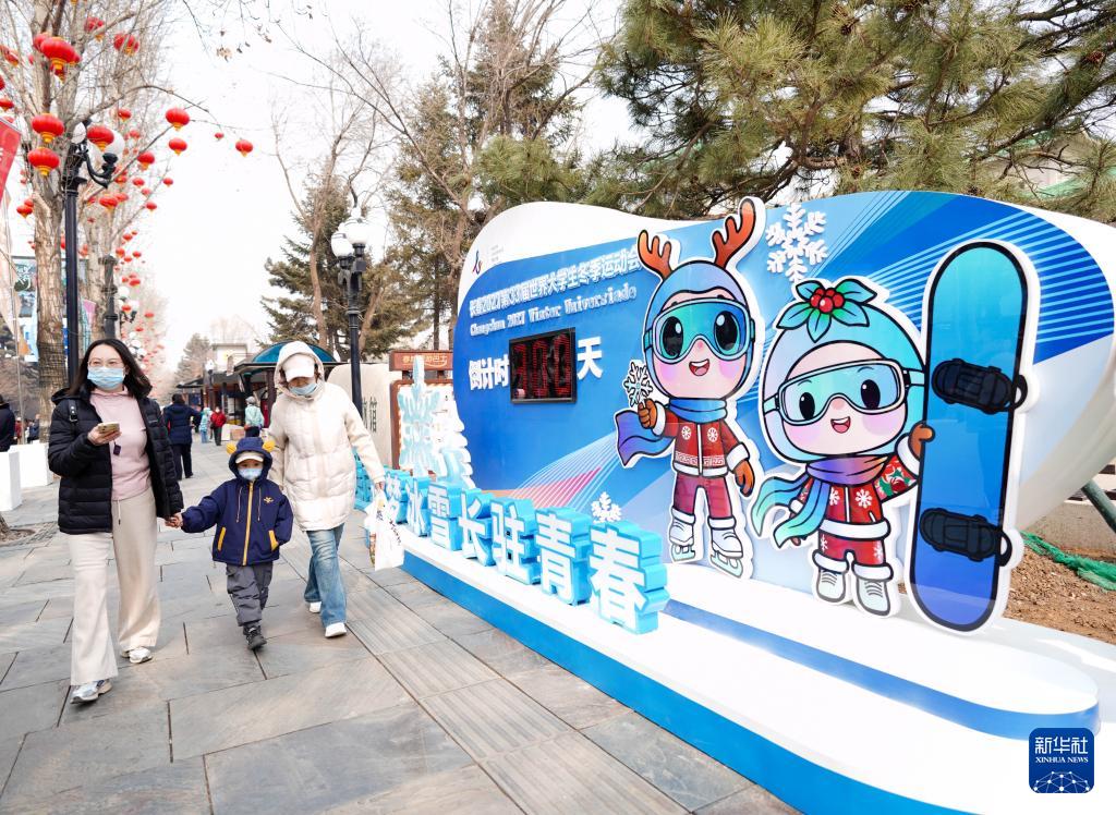 当日,长春市和吉林市举行了多项嘉年华庆祝活动,流行音乐会、大型光影秀、非遗传承展示等活动轮番上演。在吉林市中旅松花湖滑雪度假区,大冬会吉祥物人偶脚踏雪板,与由300名大学生和滑雪爱好者组成的方阵并肩在雪道上顺势滑行,区域内多块大屏幕上展示着会徽和吉祥物图案,营造出浓厚的大冬会氛围,“文体旅”融合特色进一步彰显。