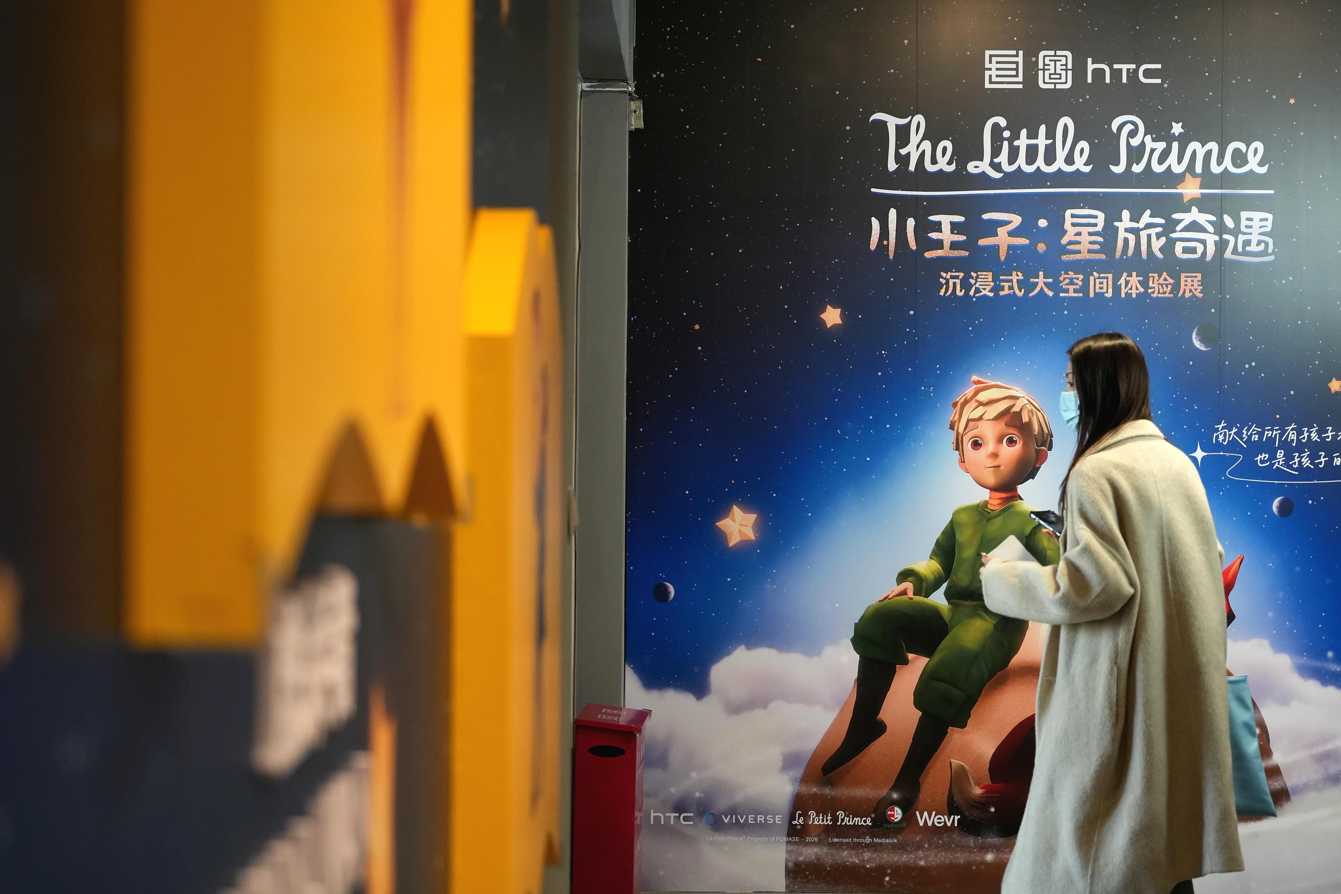 在国家典籍博物馆,观众戴上头显设备,便可以在“小王子:星旅奇遇——沉浸式大空间体验展”长达30分钟的“旅程”中,走入《小王子》这本书描绘的星球,在诗意化的视觉呈现与交互设计中重温经典,感悟成长、陪伴与责任的人文主题。