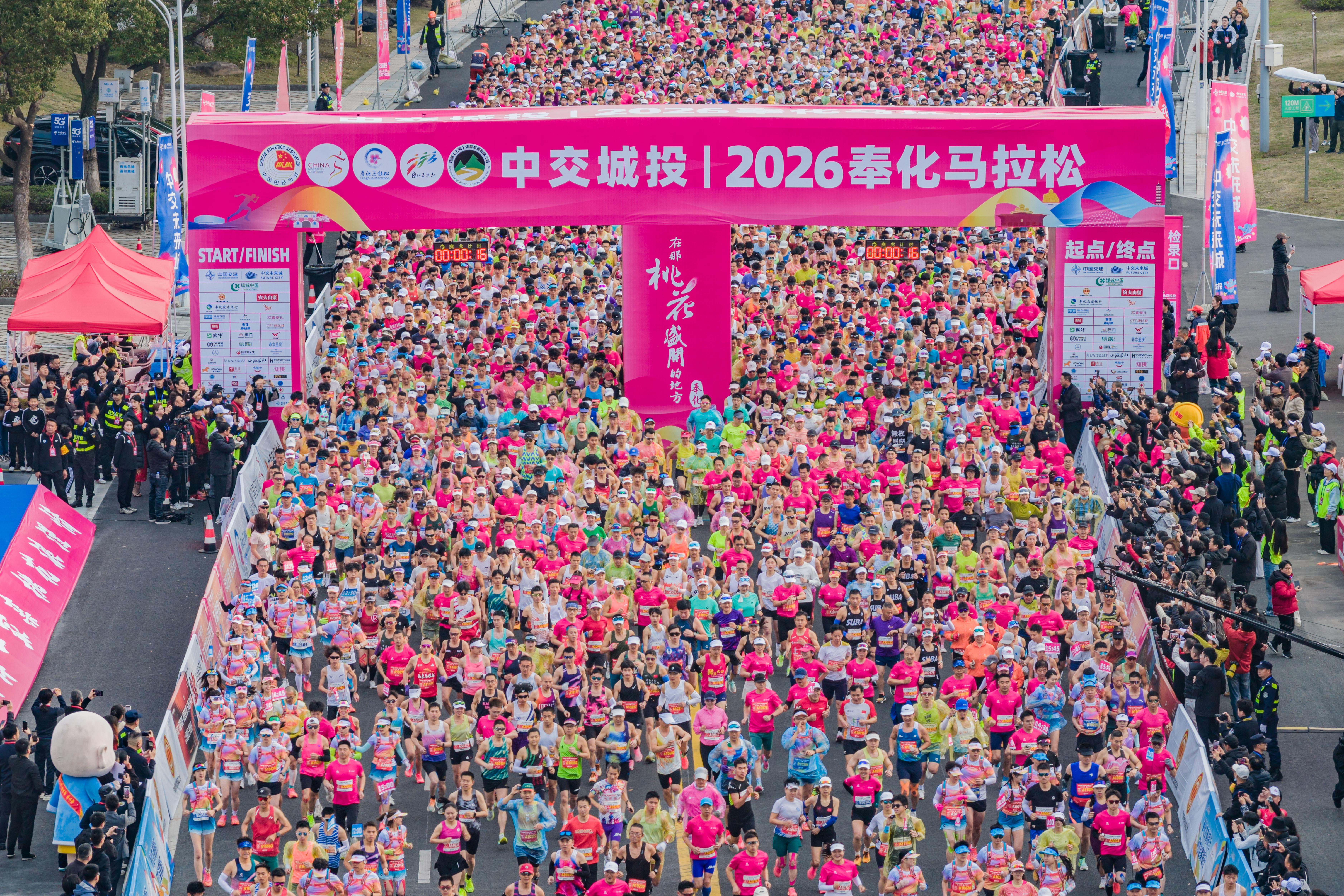 3月22日,2026奉化马拉松在浙江宁波奉化区体育中心鸣枪开跑。来自全国各地的13000名跑者齐聚奉化,用奔跑的脚步丈量奉化的蝶变之路。